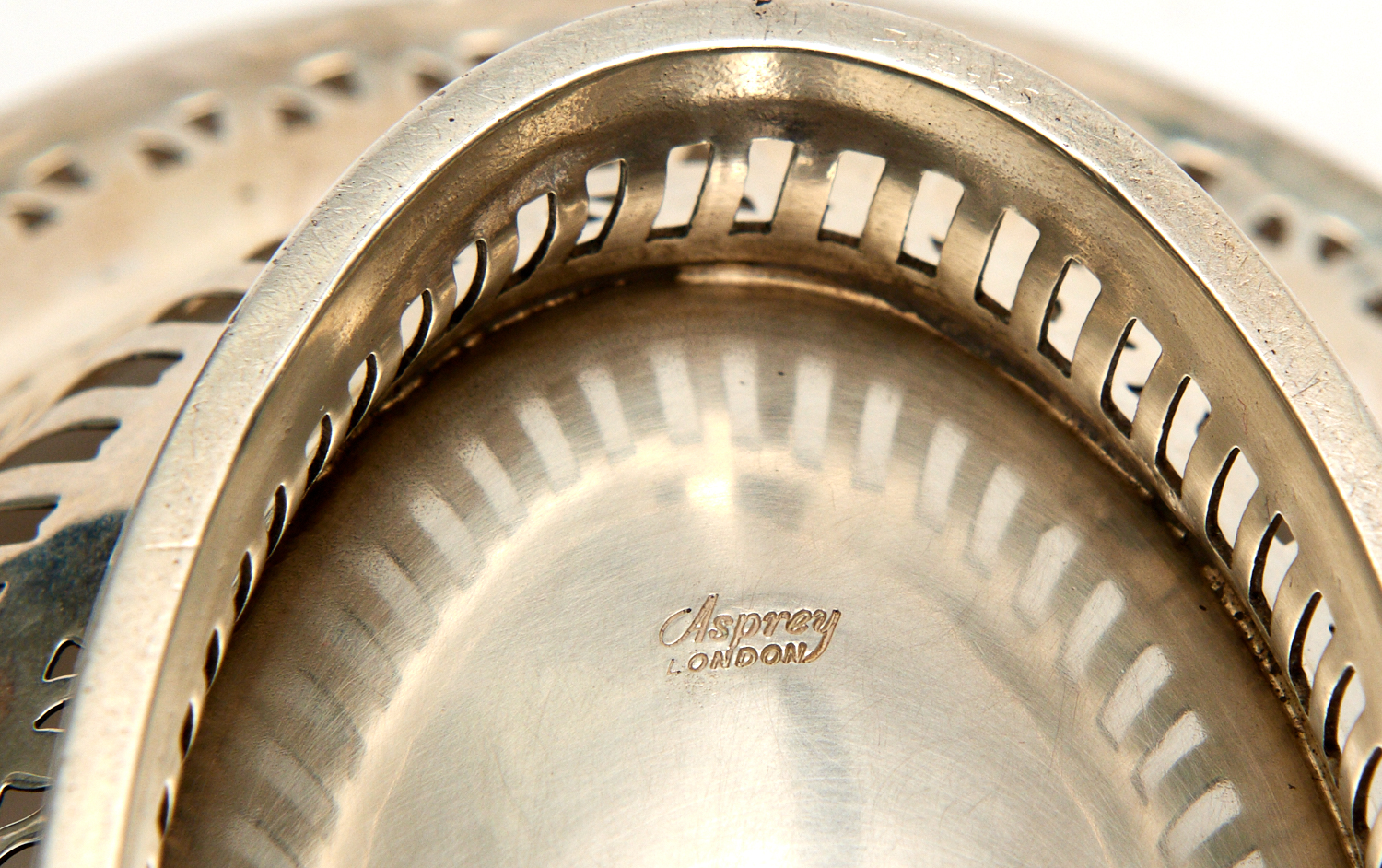 A SMALL STERLING SILVER SWING HANDLED BASKET RETAILED BY ASPREY W.17CM WEIGHT 164G