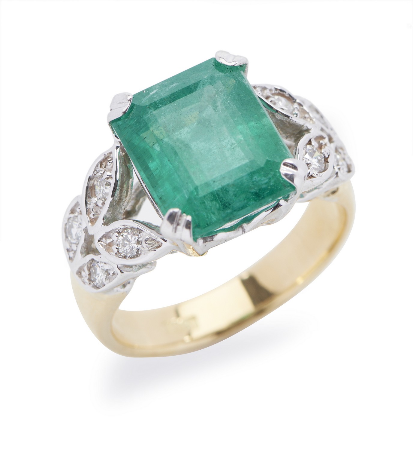 AN EMERALD AND DIAMOND NECKLACE, THE EMERALDS TOTALLING 7.10cts, AND DIAMONDS TOTALLING 6.90cts, IN 18ct WHITE GOLD, TOTAL LENGTH 44...