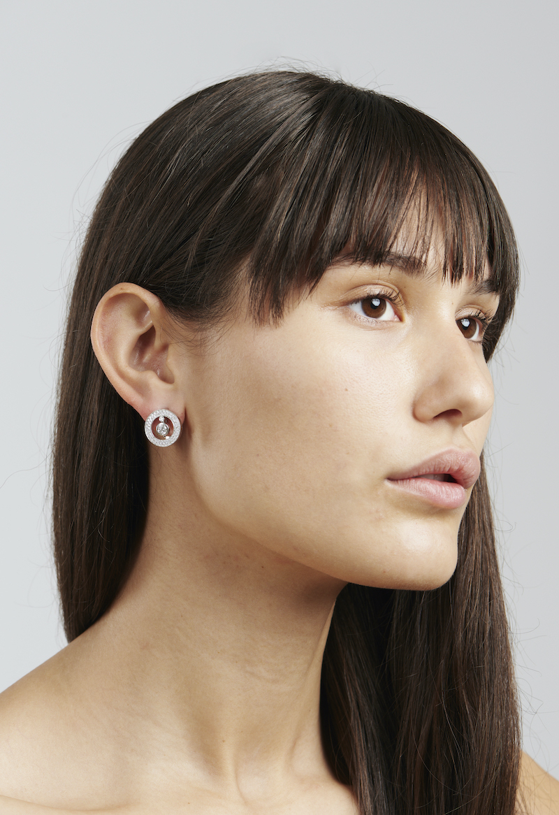 Post folds down to accommodate non pierced ears.