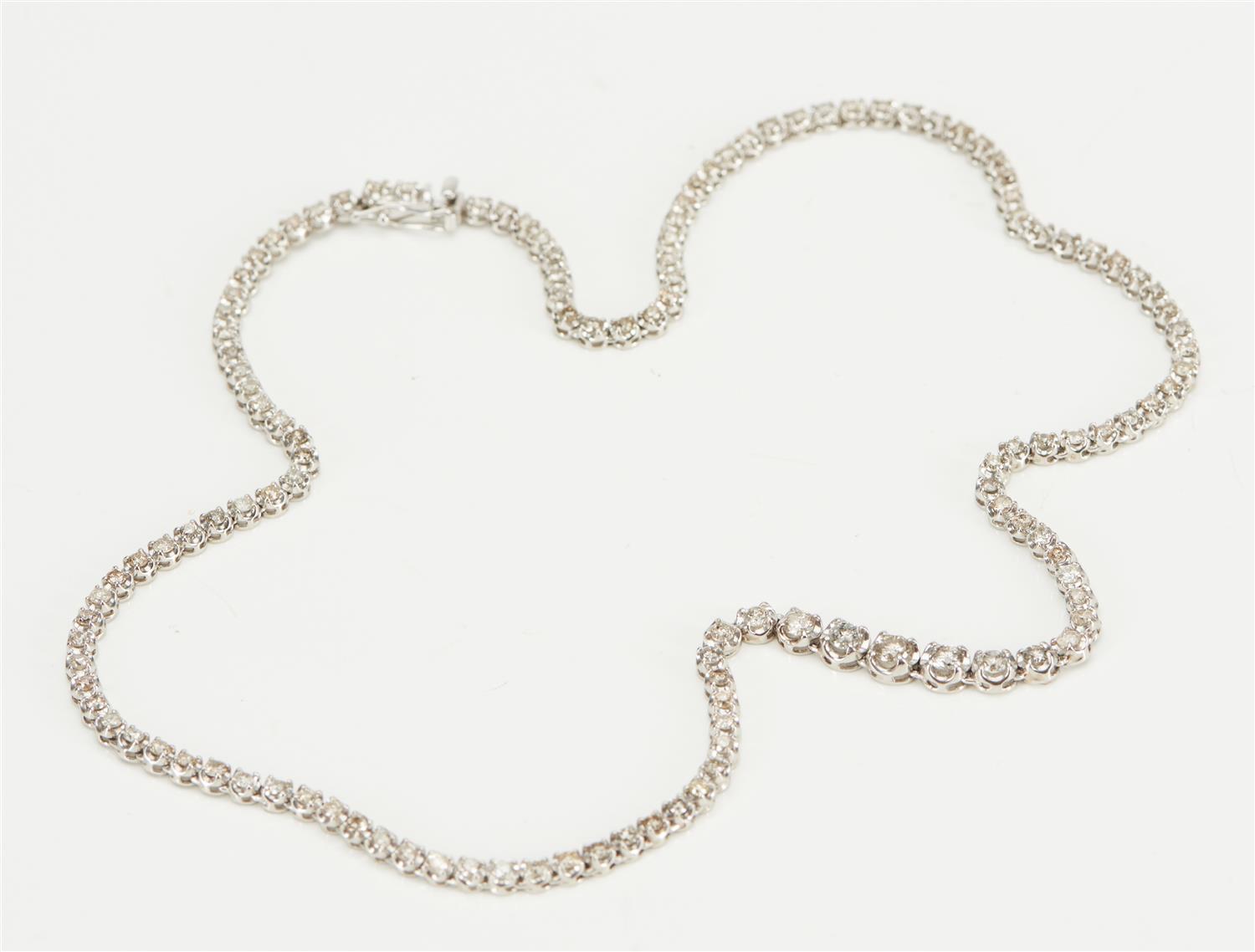 A DIAMOND RIVIERE NECKLACE - Comprising graduating round brilliant cut diamonds totalling approximately 5.0cts, in 18ct white gold.