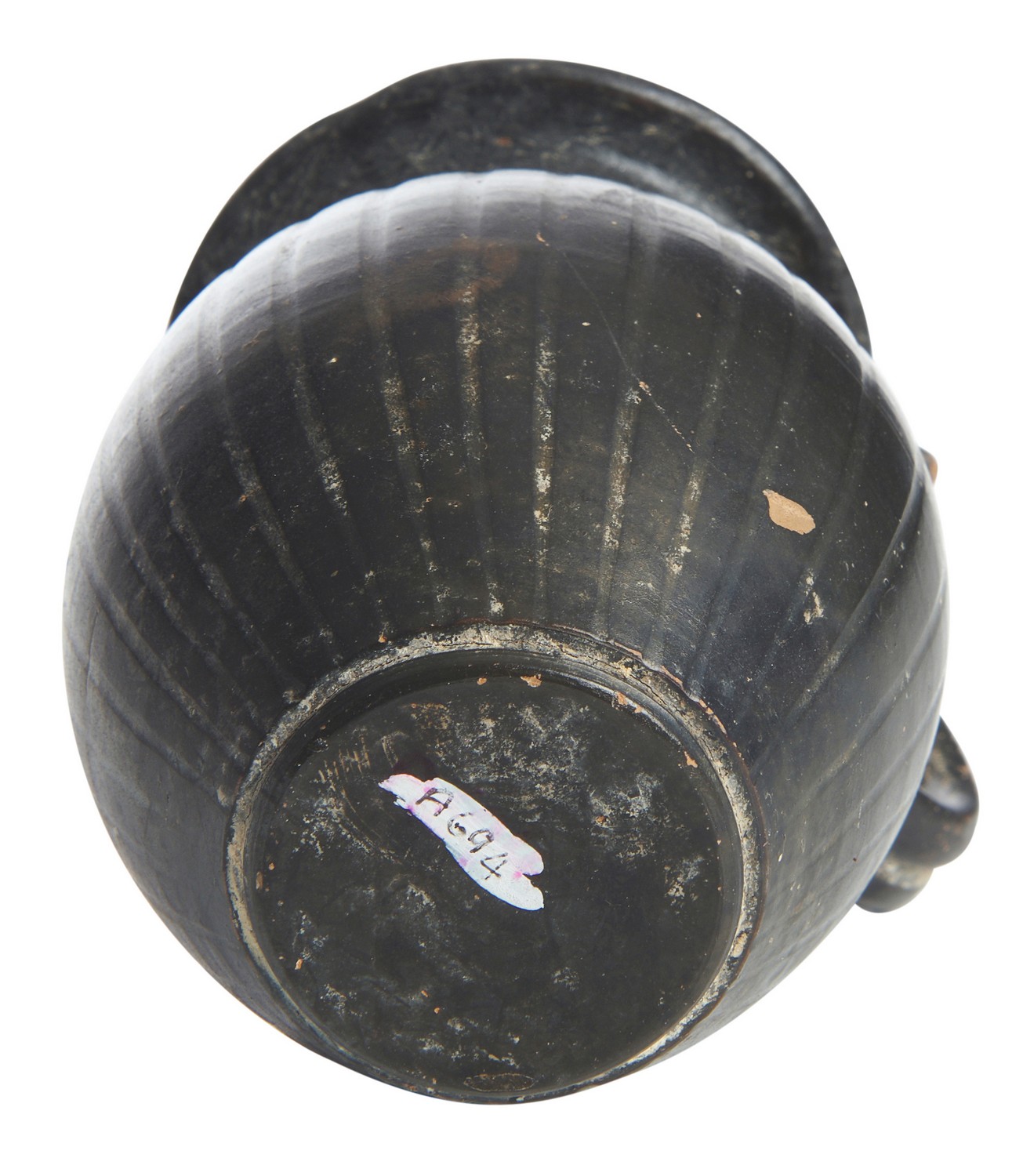 wear to glaze overall, particularly to handle. Significant area of repair to the mouthrim with associated chip. Scratches and losses to glaze in general consistent with age and use.