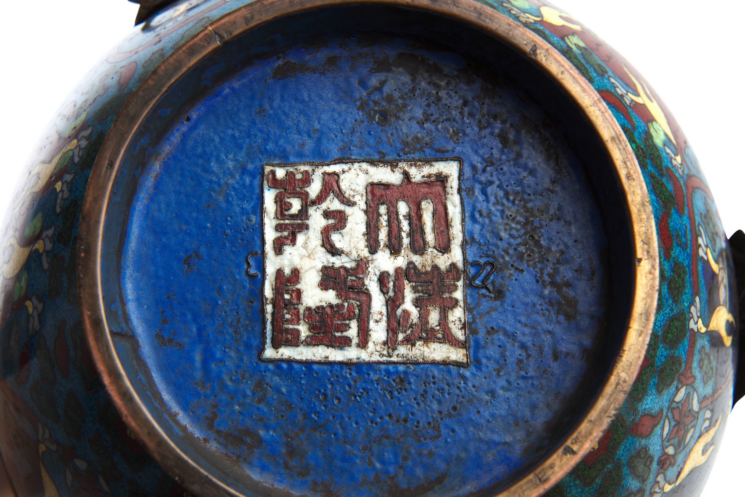 A LARGE CHINESE CLOISONNE TWIN HANDLED VASE 20TH CENTURY