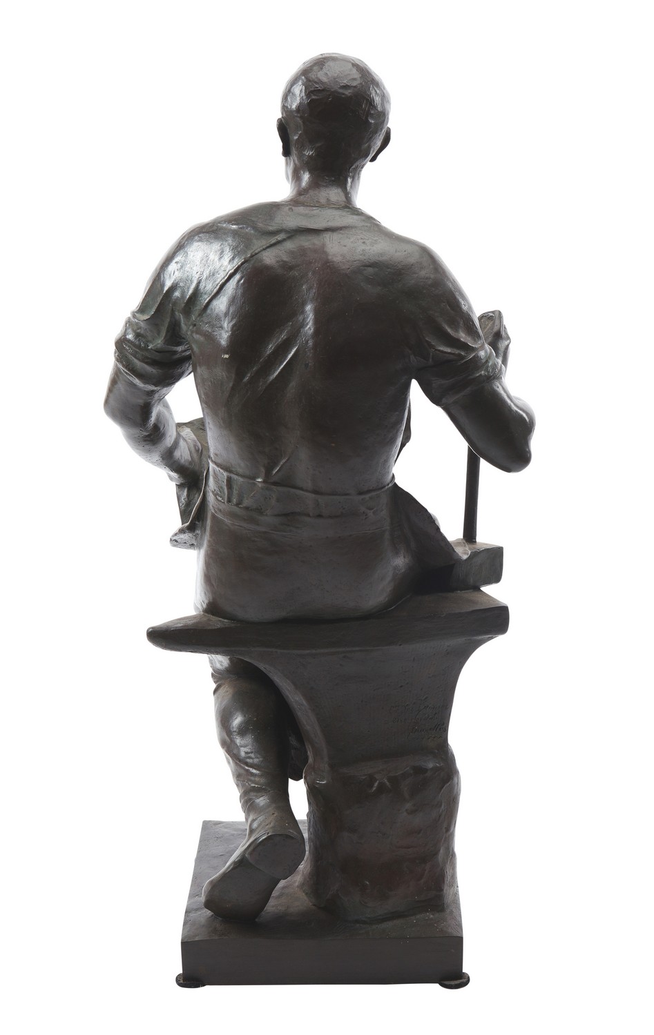 A LARGE BRONZE SCULPTURE OF A BLACKSMITH
