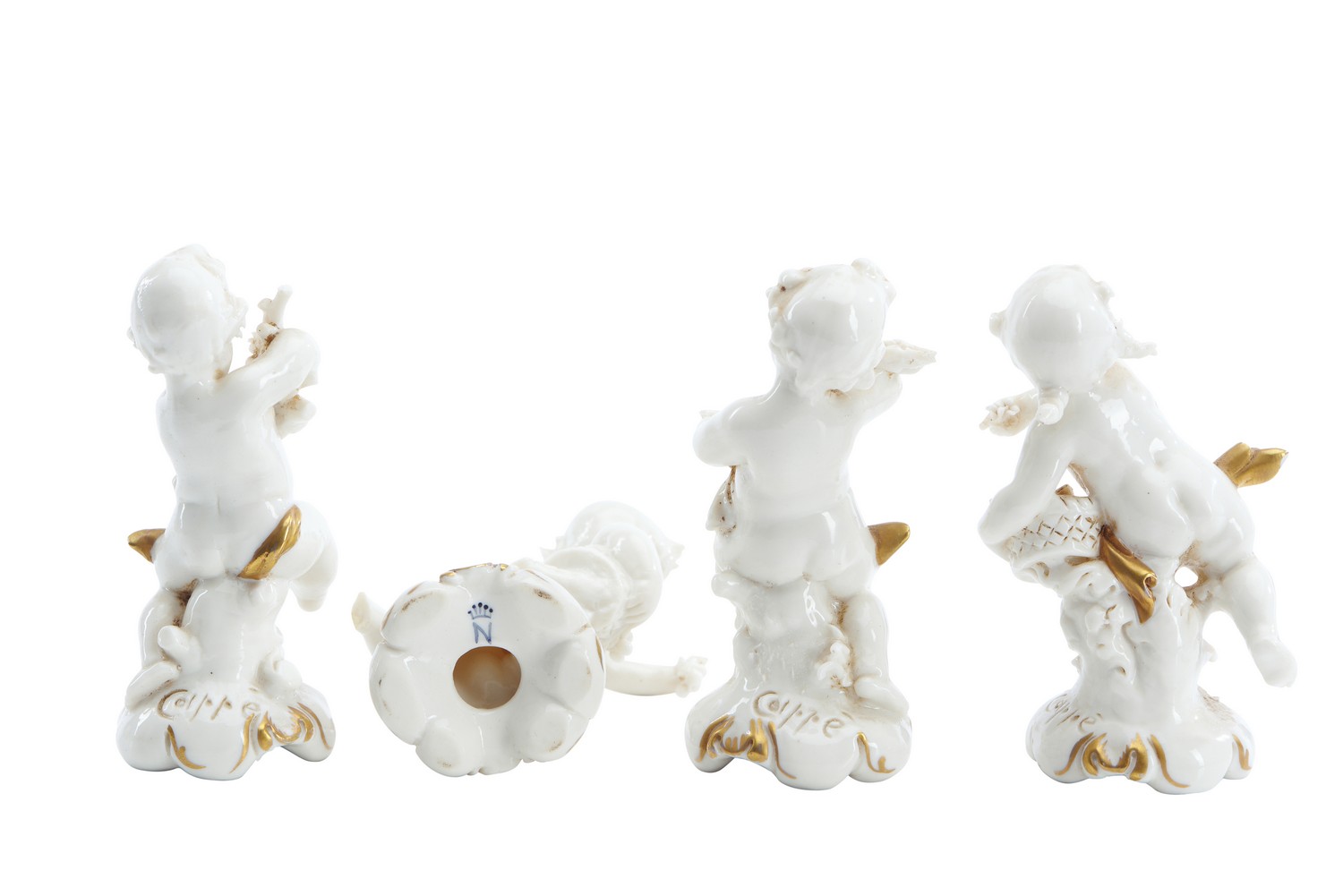 Each modelled as a cherub with holding symbols associated with each season. Marked with the N and crown mark to base and incised Cappe to verso.