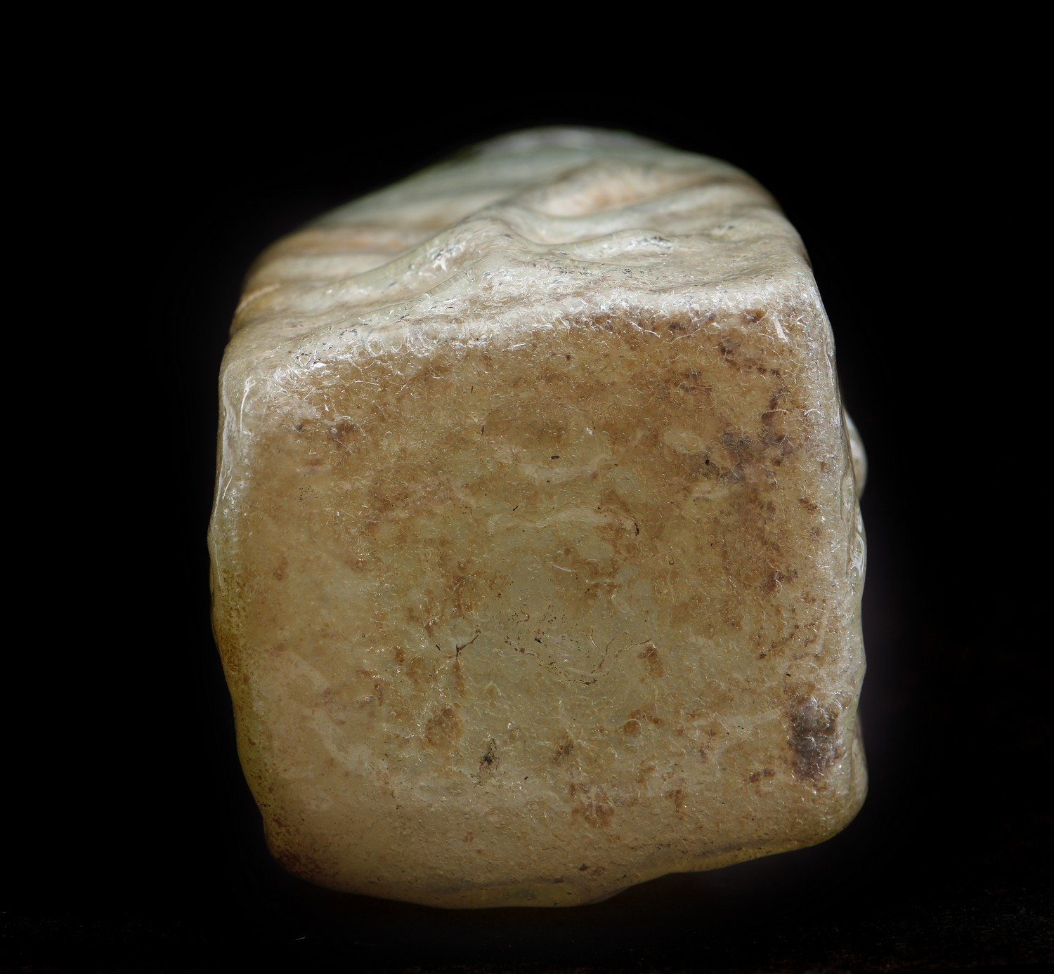 Intact with areas of iridescent patina