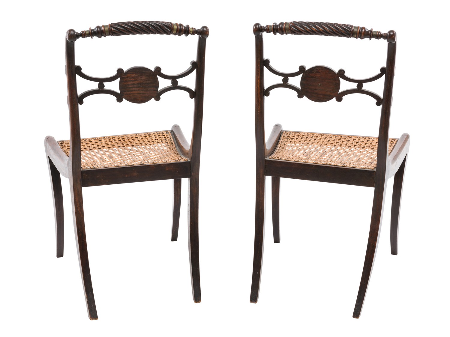 A PAIR OF ENGLISH REGENCY SIDE CHAIRS