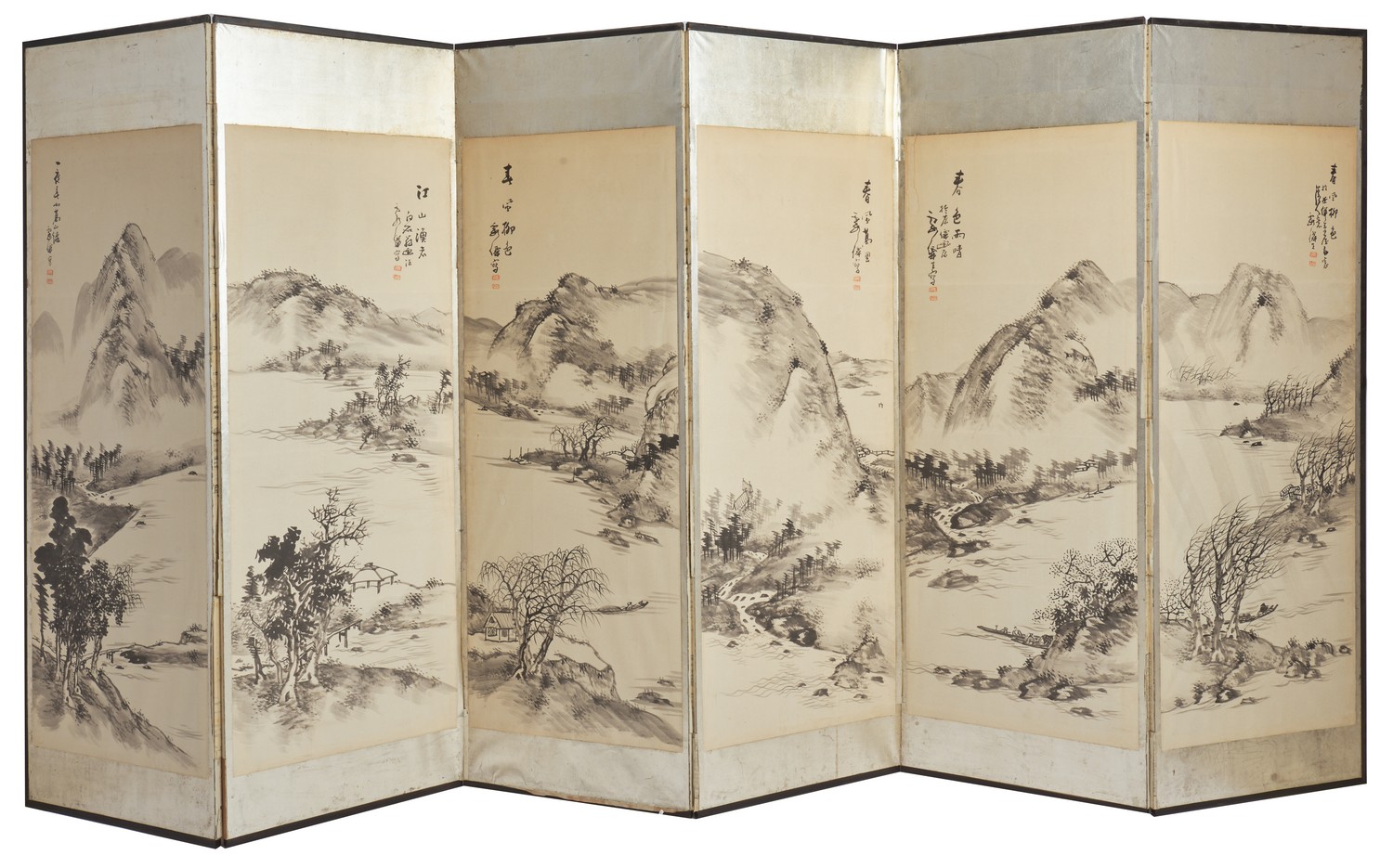 A JAPANESE SIX-FOLD LANDSCAPE SCREEN
