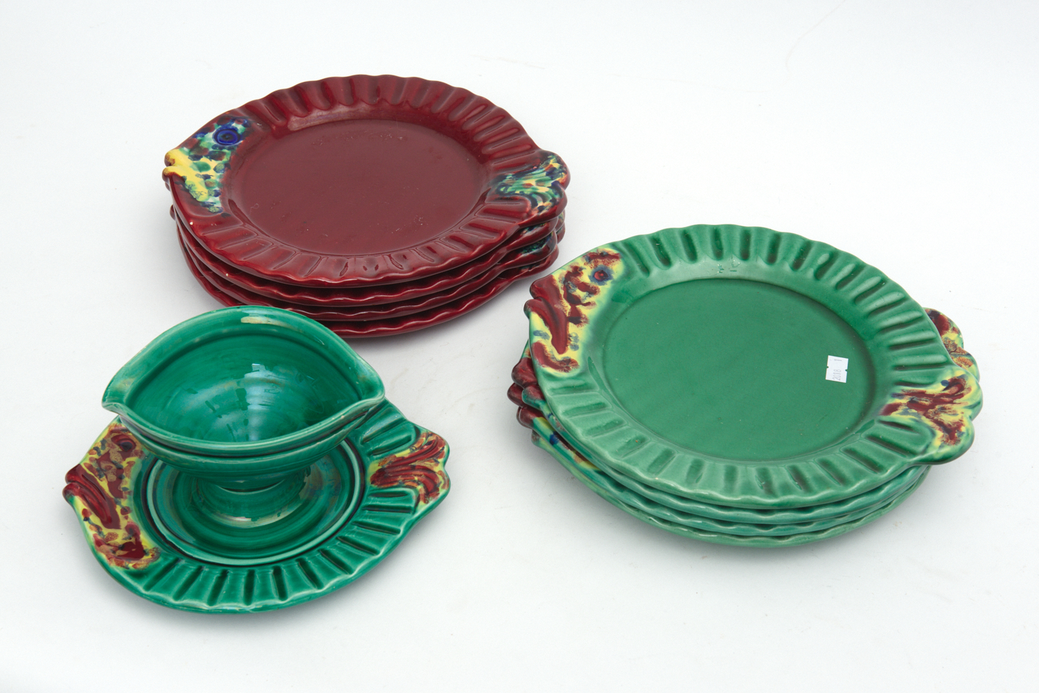 COLLECTION OF FRENCH CELENNE VALAURIS FISH PLATES AND SERVING BOWL C 1960S (SMALL CHIPS)