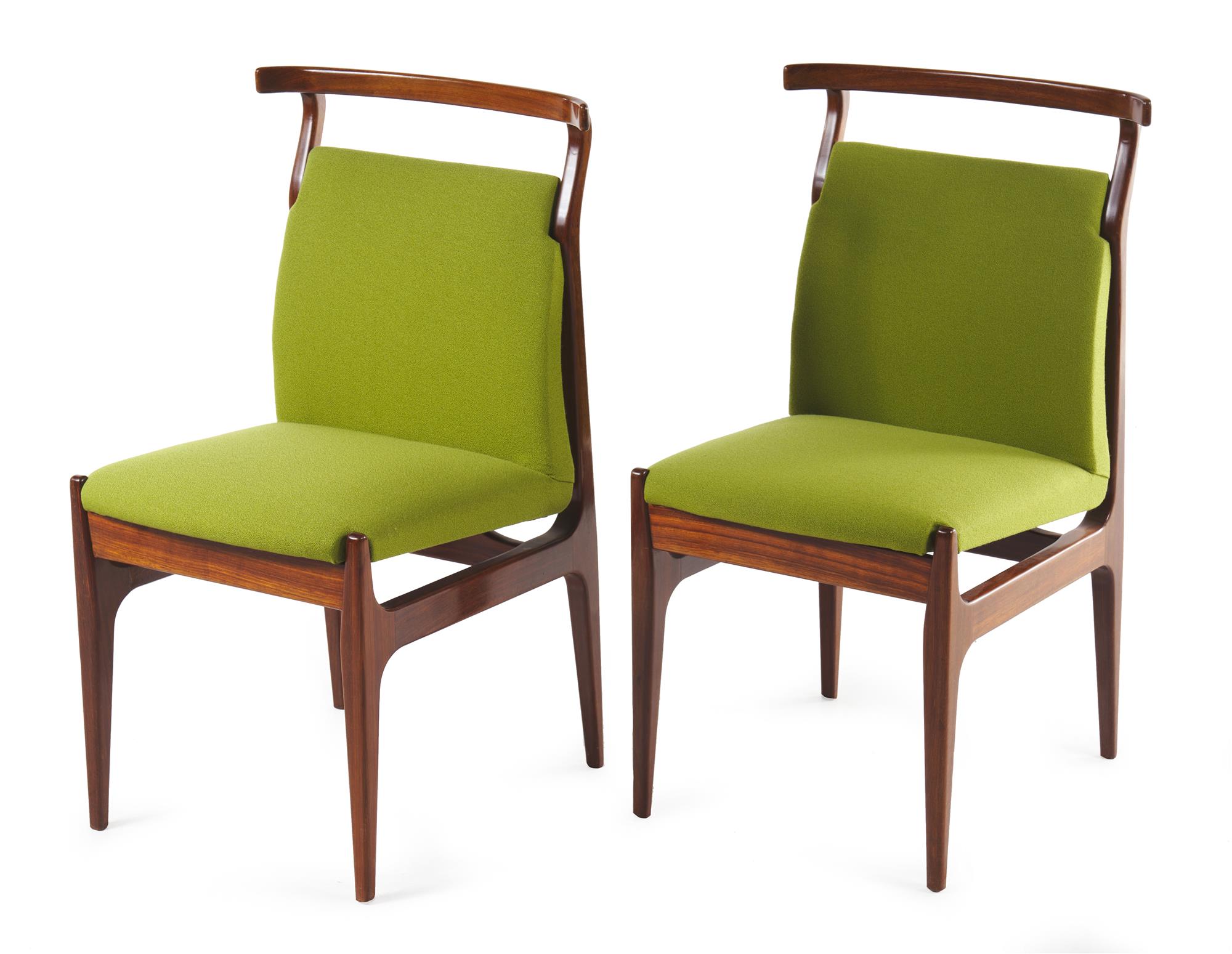 All of these chairs have been completely restored, with new cushions, fabric and polishing. Near new condition