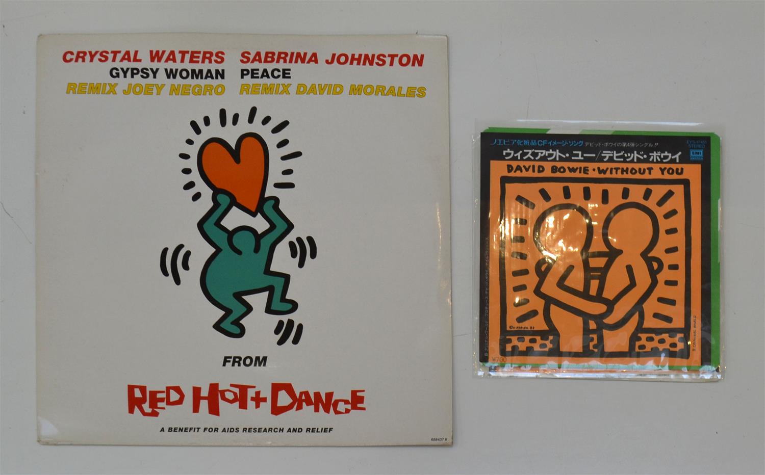 A SELECTION OF RECORDS WITH COVER ART BY KEITH HARING (7), AND SEEN AND DUSTER (1)