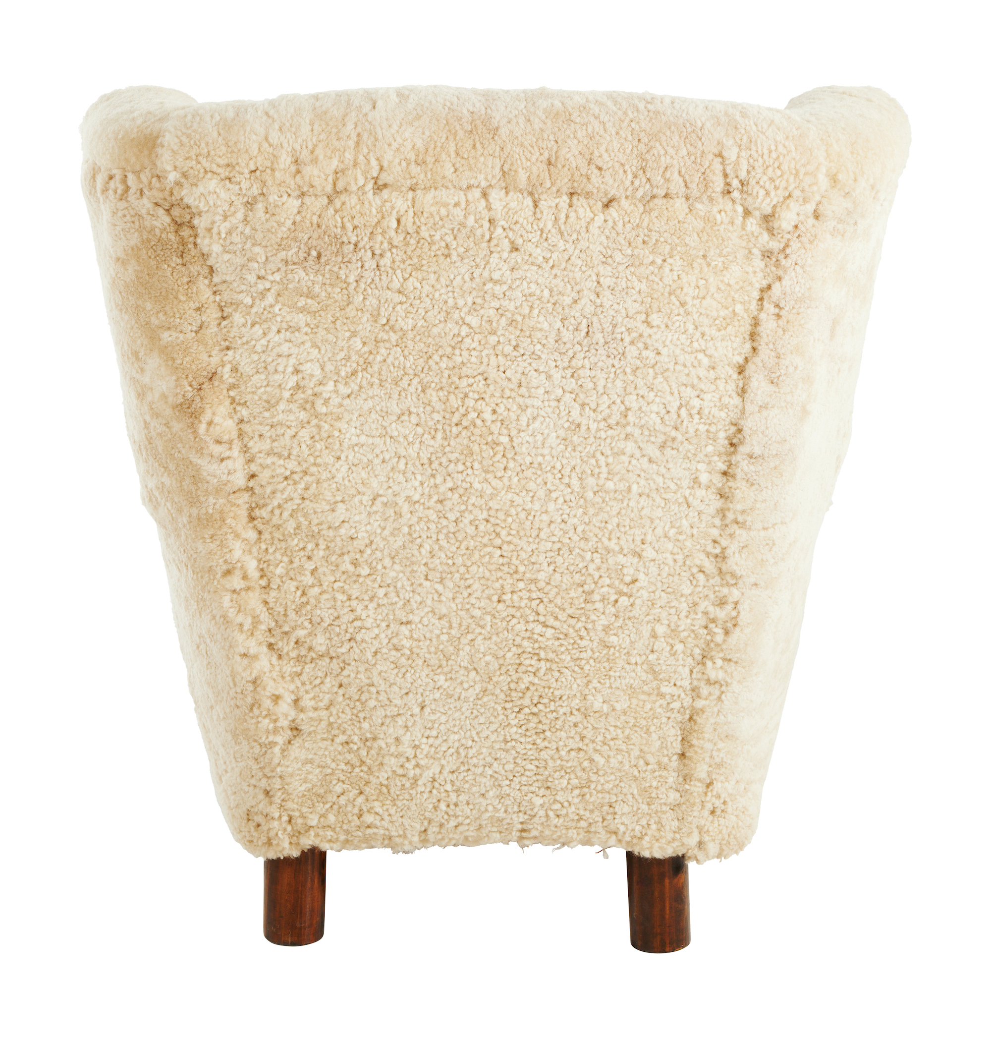 Excellent condition, no losses to sheepskin, minor surface scratches to feet, structurally sound.