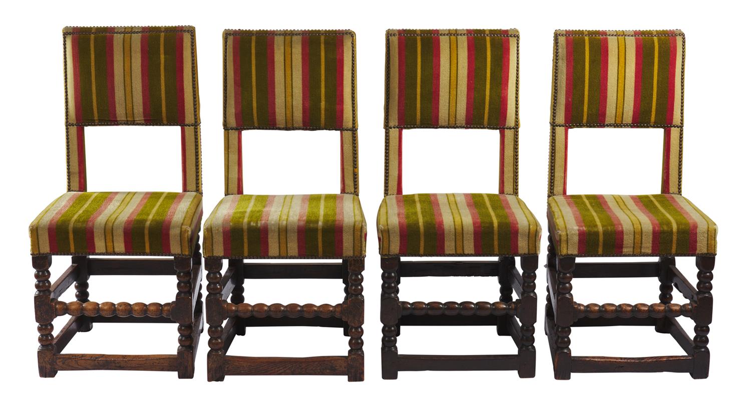 A SET OF EIGHT CHARLES II STYLE SOLID OAK DINING CHAIRS