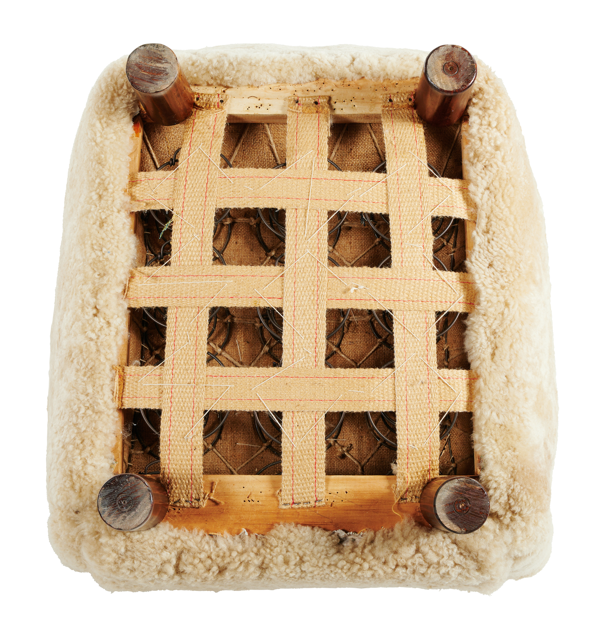 Excellent condition, no losses to sheepskin, minor surface scratches to feet, structurally sound.