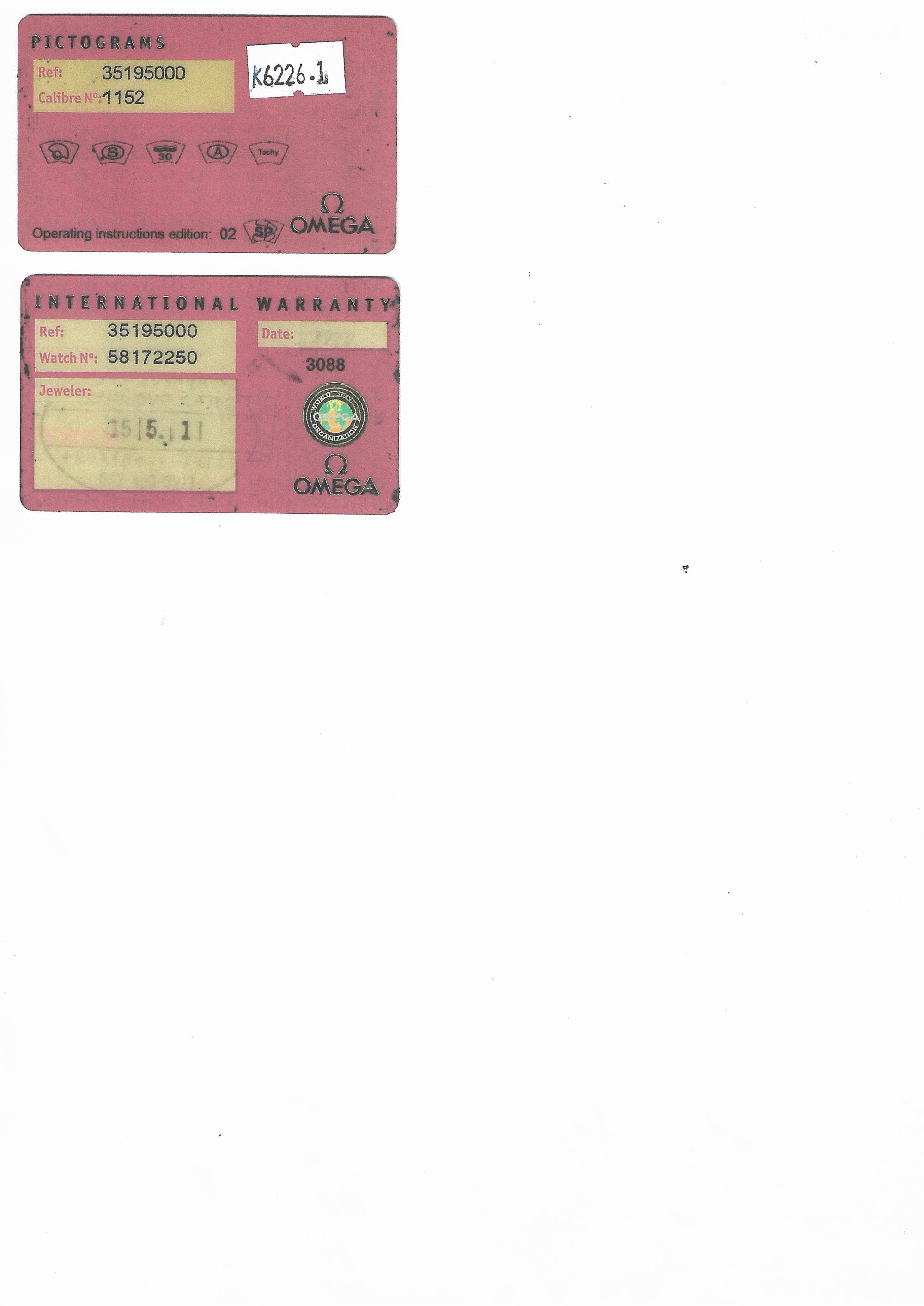 Accessories: Accompanied by an Omega International Warranty card, Omega presentation box, product literature, leather wallet and outer packaging