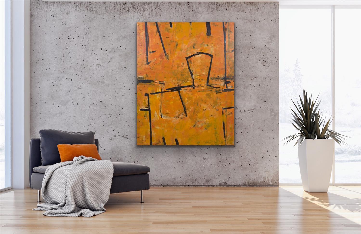 signed and titled verso: Figure on / Orange Wall / Fransella