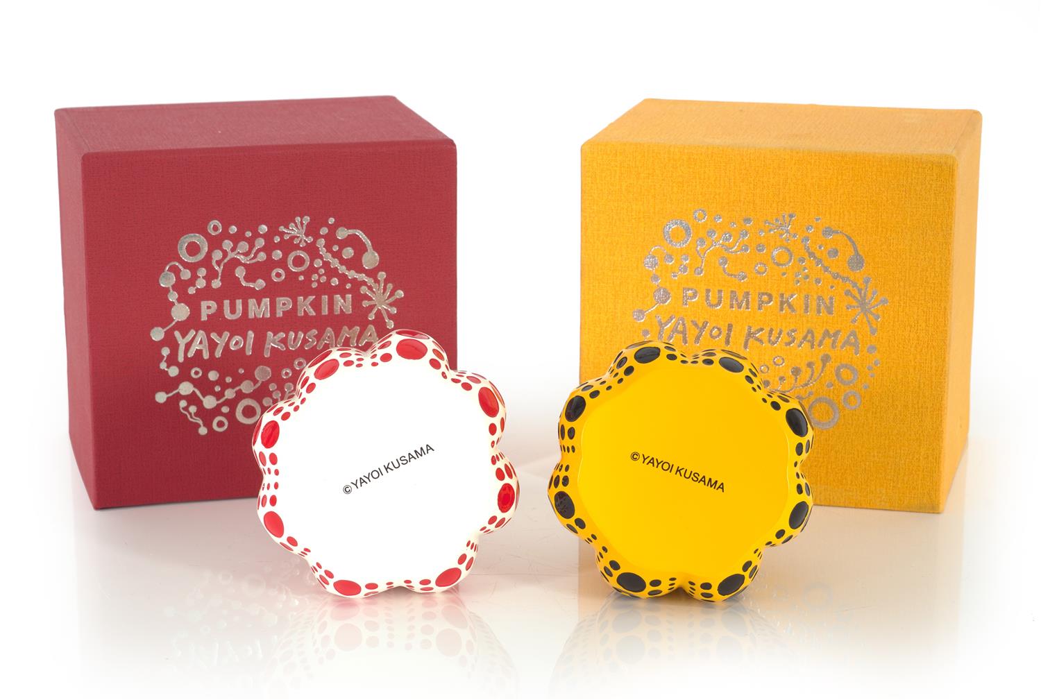 This miniature pumpkin sculpture features the polka dot patterns and bold colors for which Kusama is perhaps best known. Kusama first used the pumpkin at the 1993 Venice Biennale for the Japanese pavilion and since then it has appeared in various iterations, often created in concert with several of her other practices, such as her soft, phallic-like sculptures and her installations of monstrous flora.