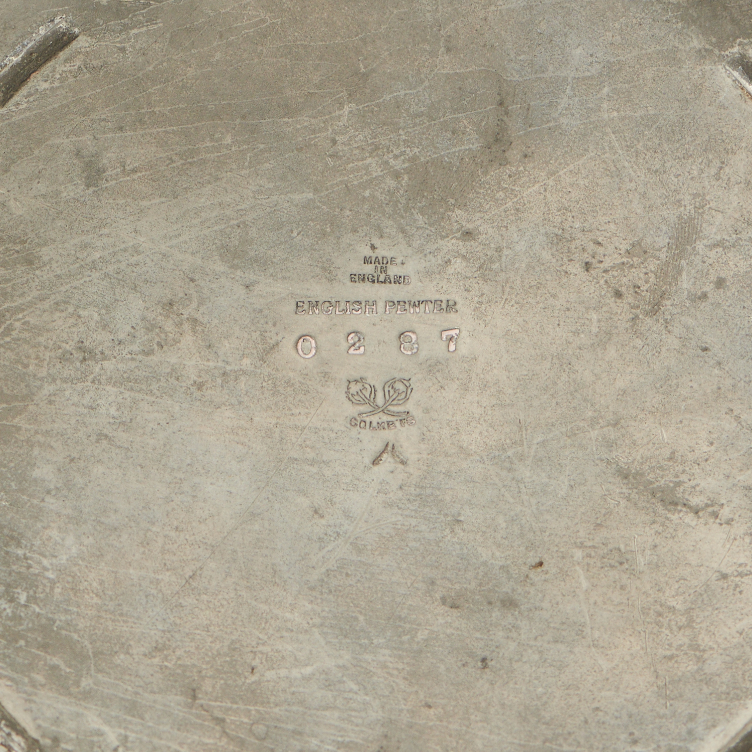 With decorative pierced heart-shaped handles and pierced shamrocks around the edges, the base enamelled in vibrant peacock blue, marked to verso 'Made in England/ English Pewter/ 0287/ Solkets'