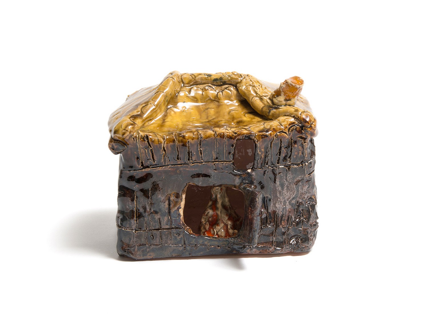 The first of two pieces by Shoshanna Brott selected for Gala, and this petite ceramic house appears to have formed organically, with twisted tree branches covering the roof and a trunk-like form through the centre of the room.