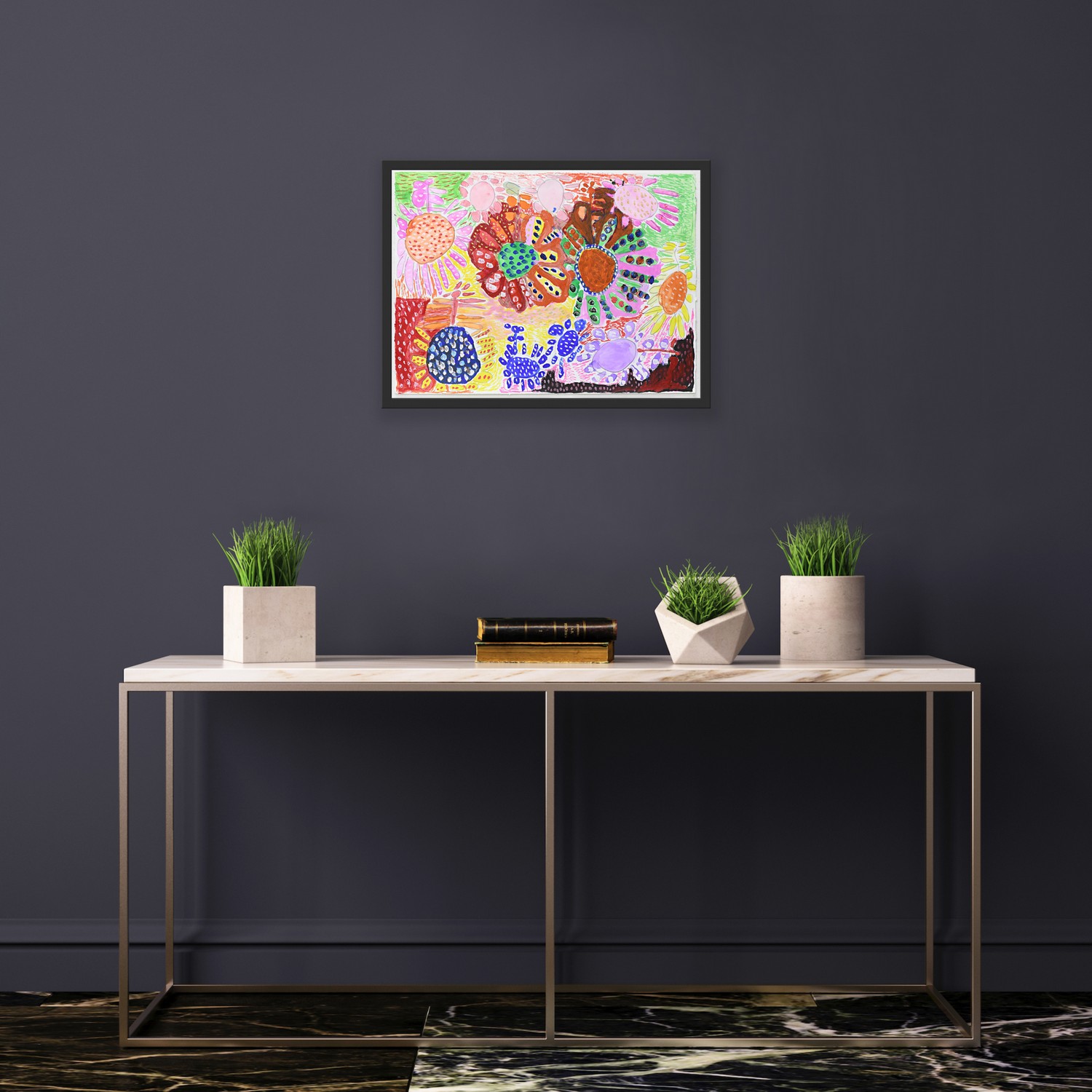 Robert Brown is an accomplished abstract painter whose work is characterised by his use of pop and fluoro colour and spontaneous layering of floral motifs. Typically working on large sheets of paper and canvas, he draws inspiration from found images of landscapes, reinterpreting what he sees with great freedom to create bright compositions, balancing highly concentrated pattern with quiet space.
