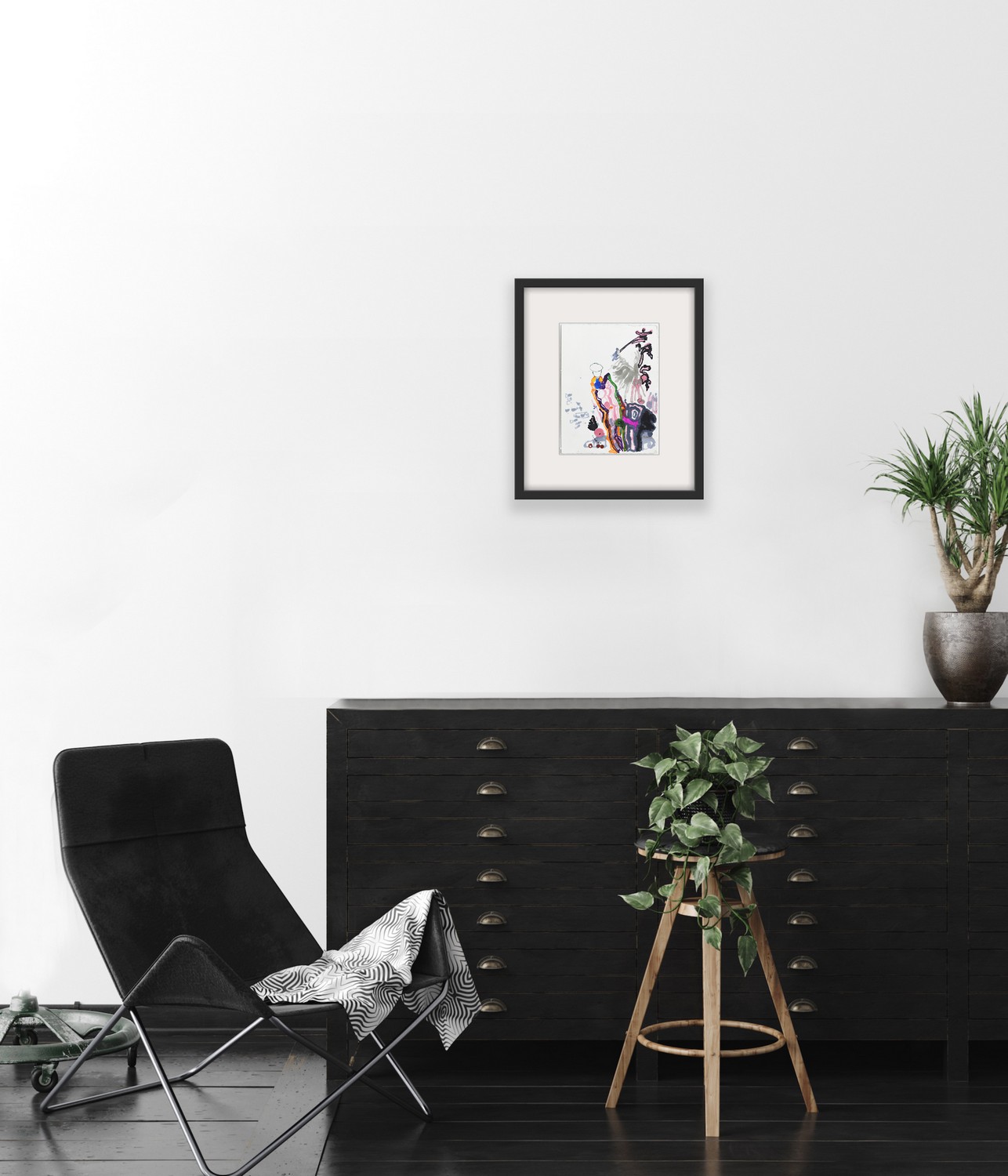 This elegantly balanced work by John Dudley combines light sketching with dense ink application, the composition generating deeper intrigue on closer inspection.