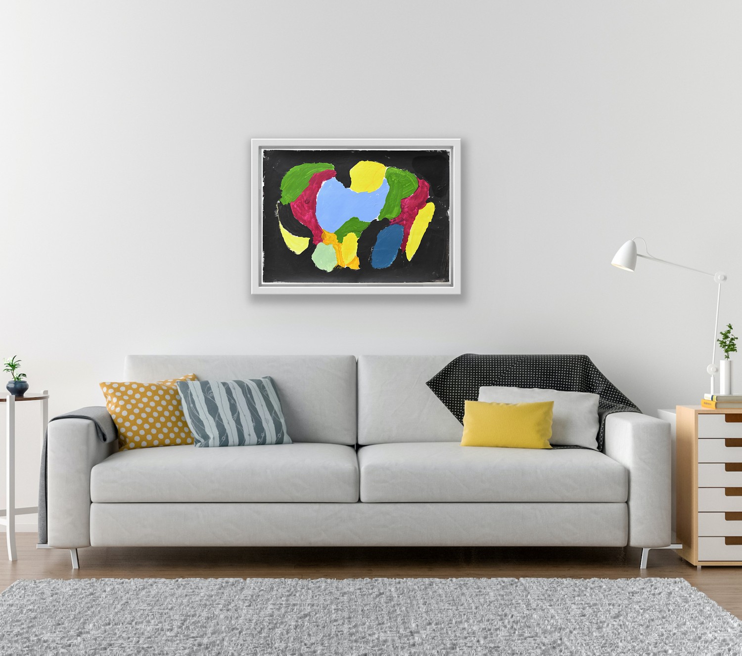 McKenzie's abstract painting is striking in its composition a colour palette.