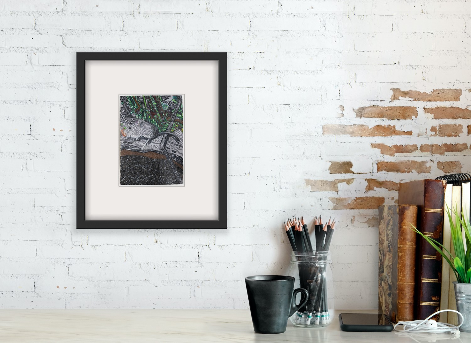 greylead and colour pencil on paper