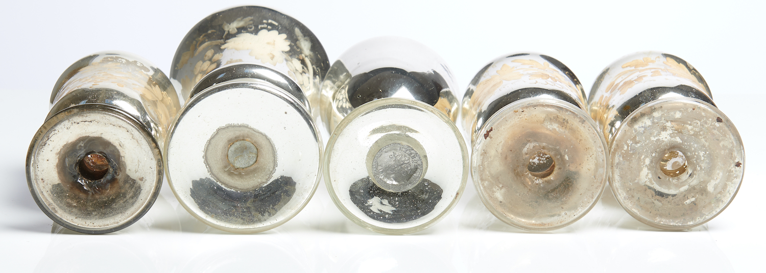 FIVE ENGLISH MERCURY GLASS GOBLETS
