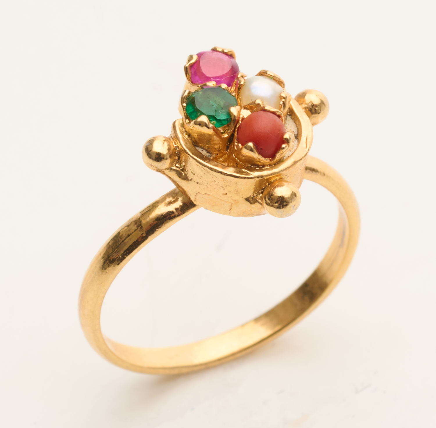 A GEMSET JEWELLERY SUITE COMPRISING A NECKLACE AND A RING, SIZE L