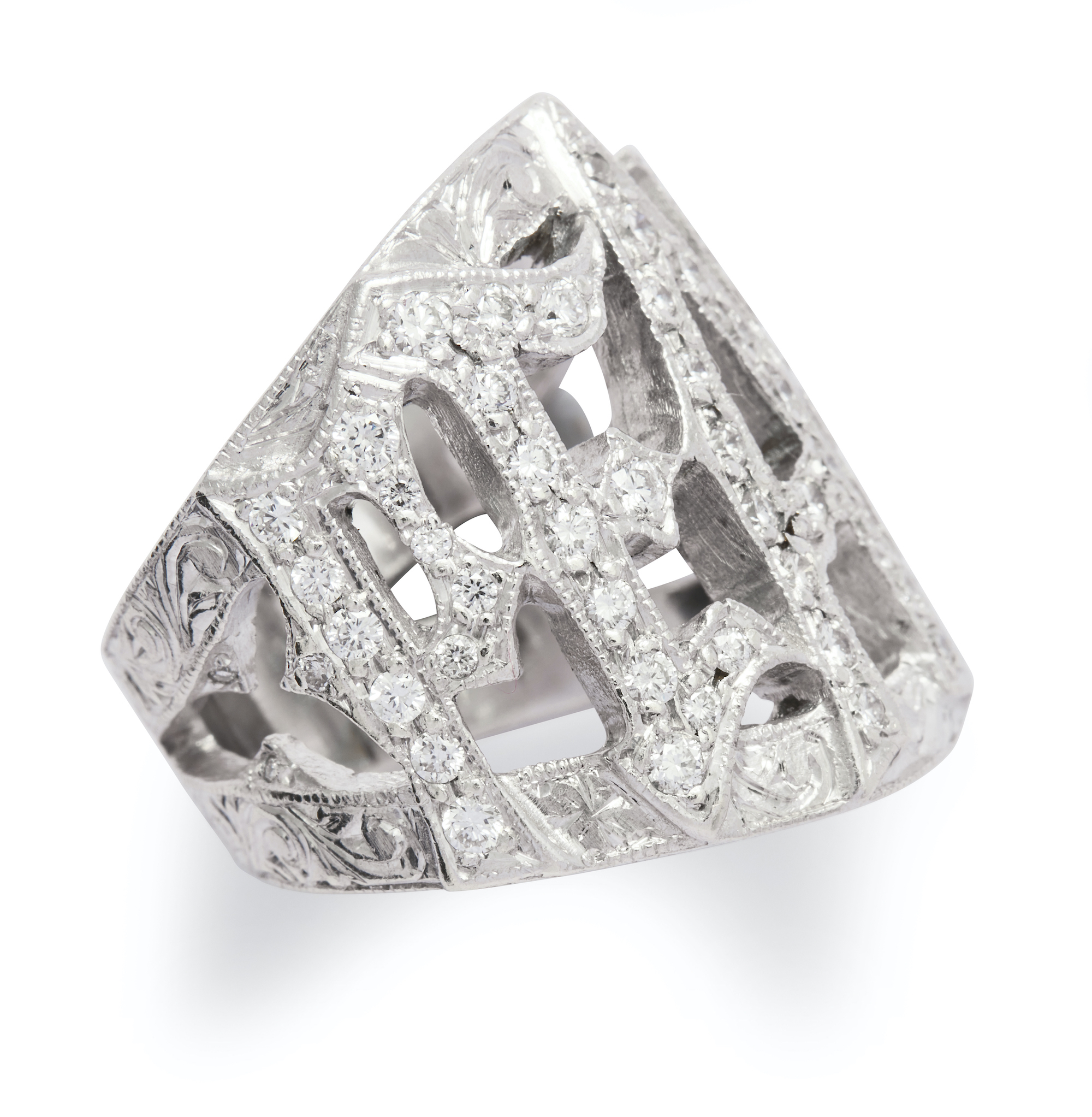 Of openwork design millegrain-set with brilliant-cut diamonds, the diamonds together weighing approximately 1.00 carat, maker's mark for Loree Rodkin, stamped LR for Loree Rodkin, size M.