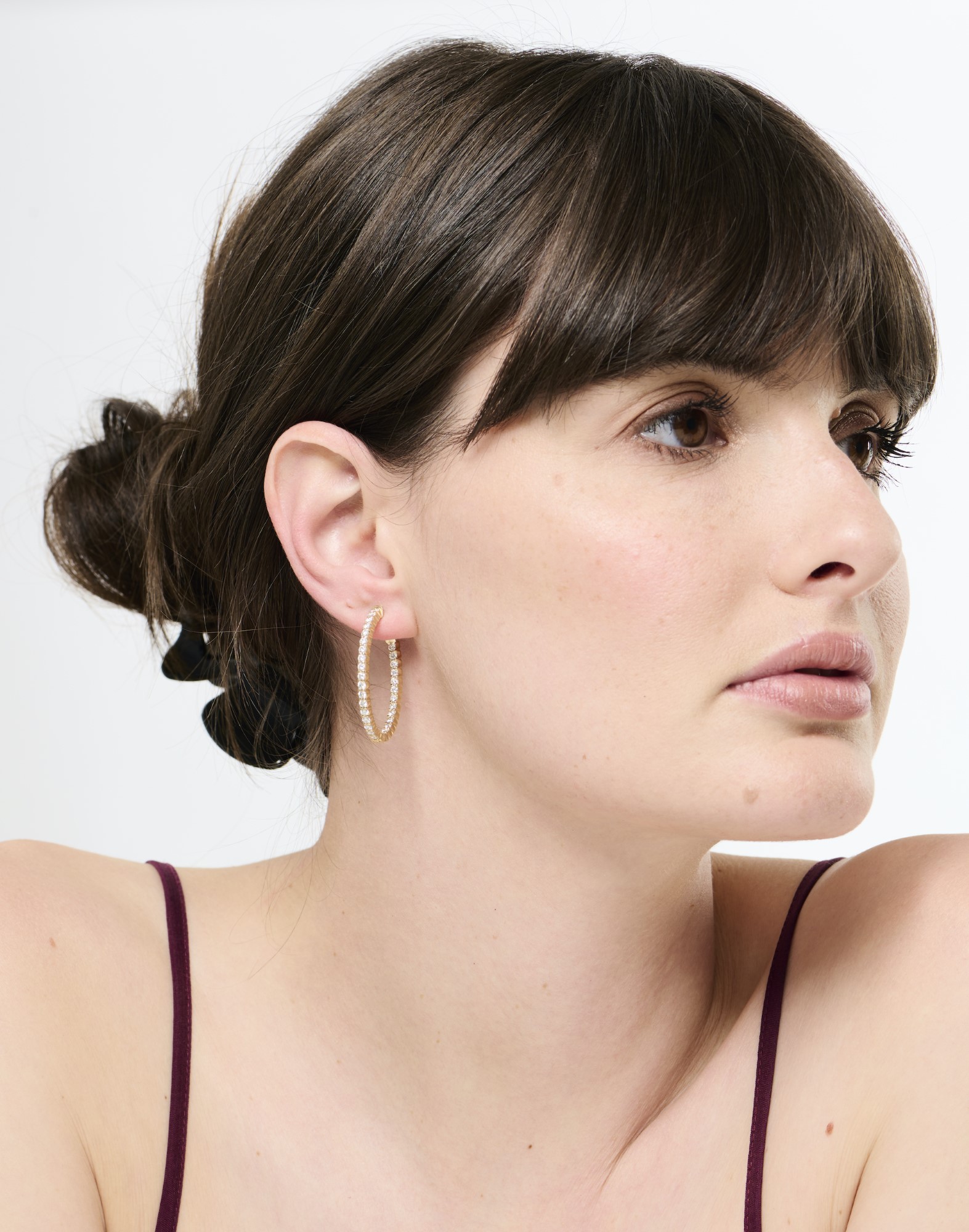 The elliptical hoops set to the front and inside back with claw-set brilliant-cut diamonds together weighing approximately 2.25 carats, length approximately 35mm, post and clip fittings.