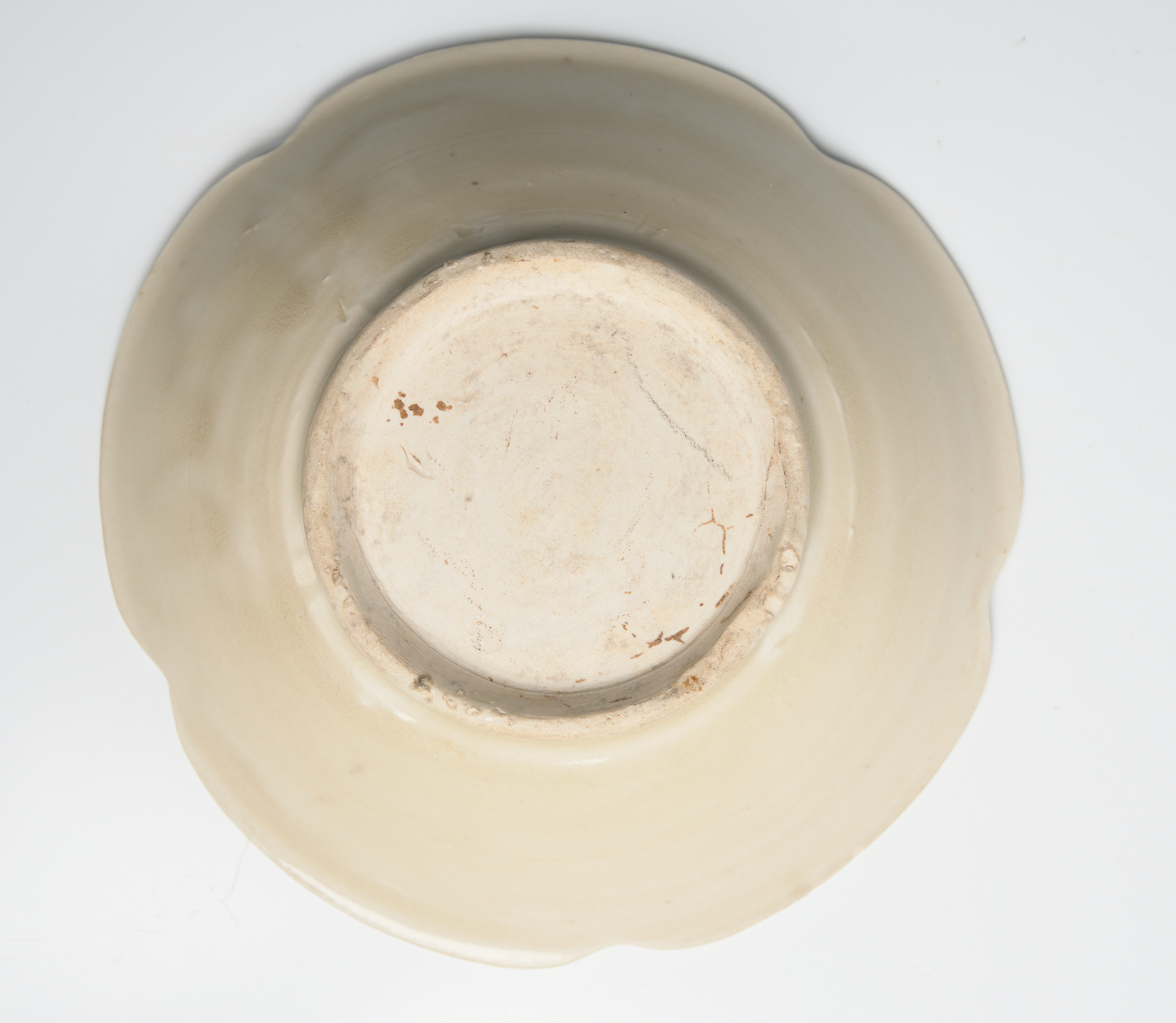 A few very small chips to one of the lobed underneath the rim. Wear to the glaze in the interior.