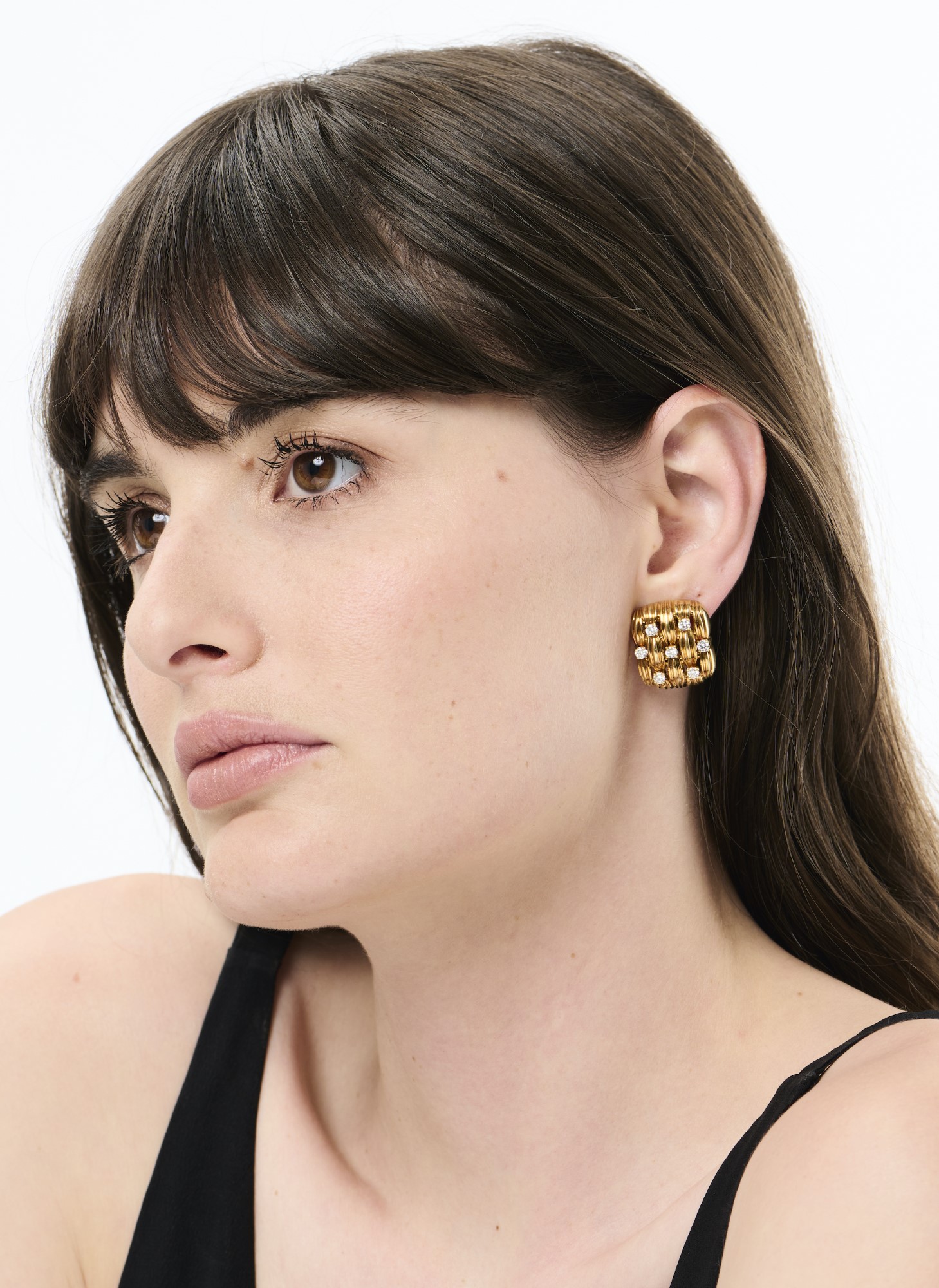 Each of basket-weave design, decorated at intervals with seven claw-set brilliant-cut diamonds, the diamonds together weighing approximately 0.42 carat, approximately 22.5mm x 19.5mm, signed Tiffany & Co. 1992, clip fittings.