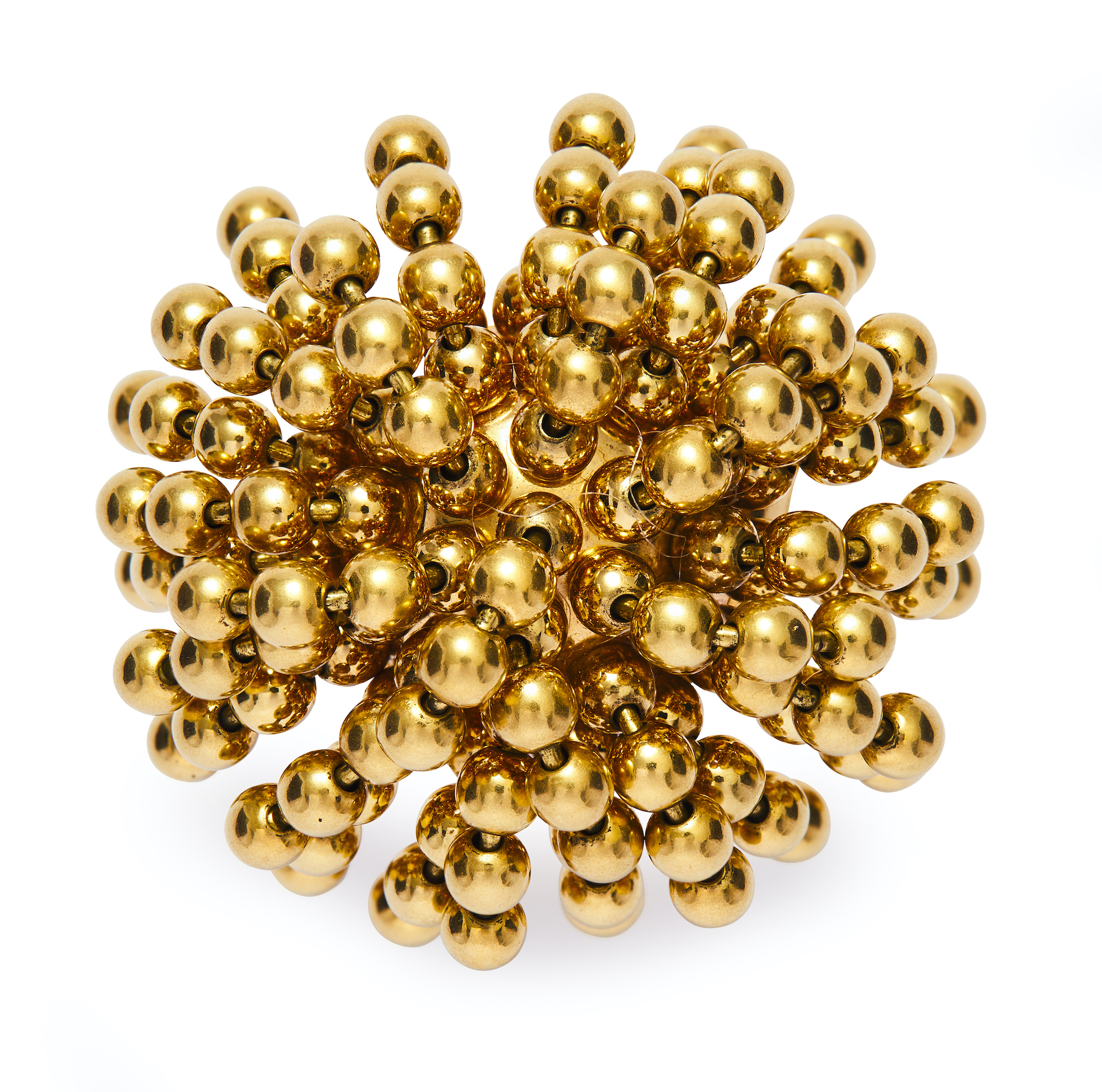 The tapered bombe ring supporting a cluster of gold bead tassels, size S, signed Cartier, two tassels deficient.