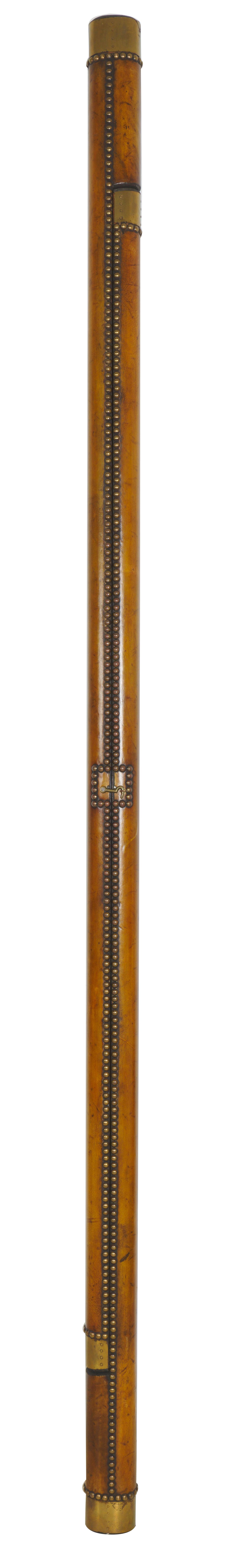 The olive green leather covered wooden folding ladder from the mid-20th century, with nail-head trim and brass accents.