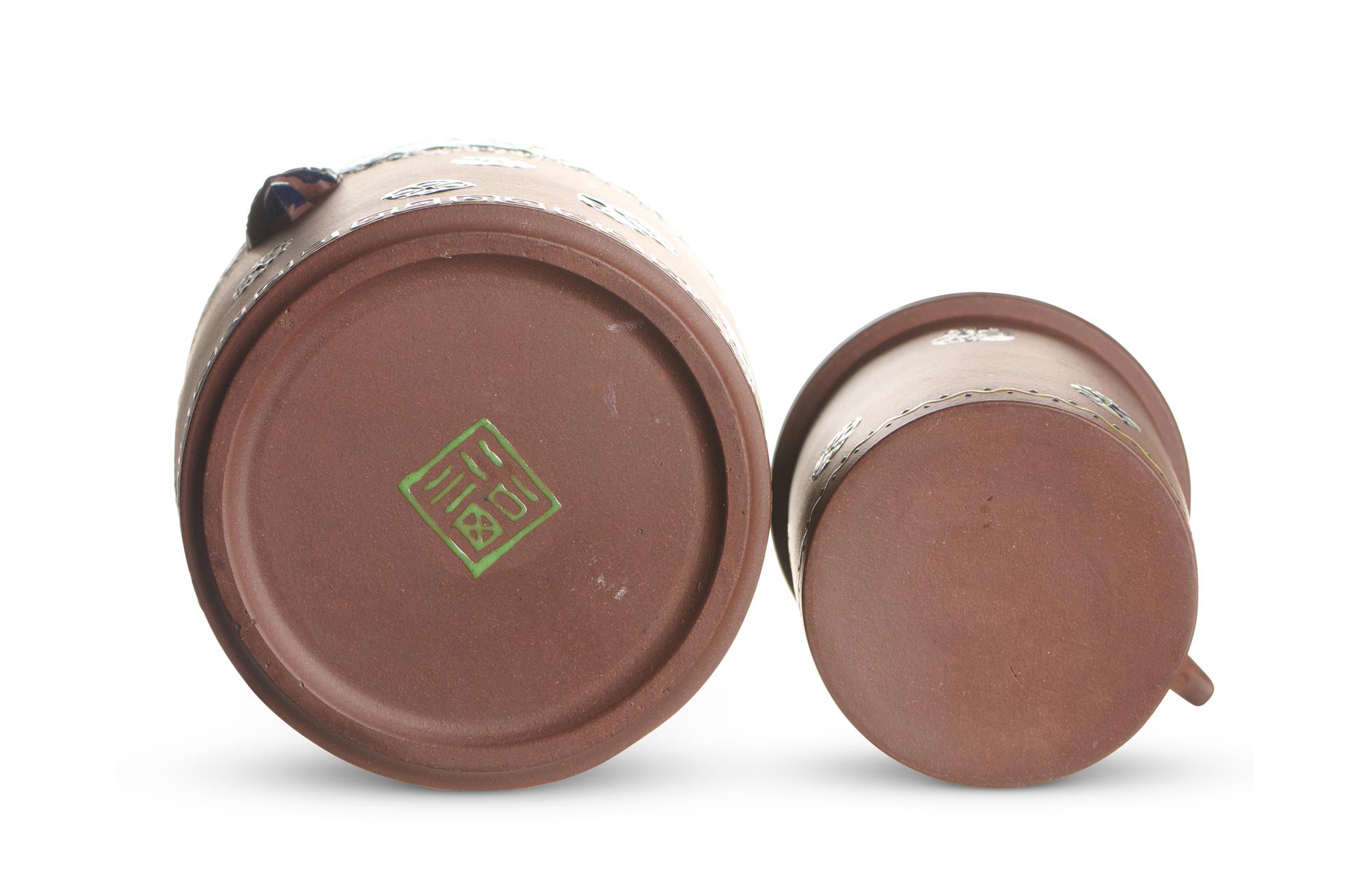 A CHINESE YIXING ZISHA WINE EWER WITH WARMER