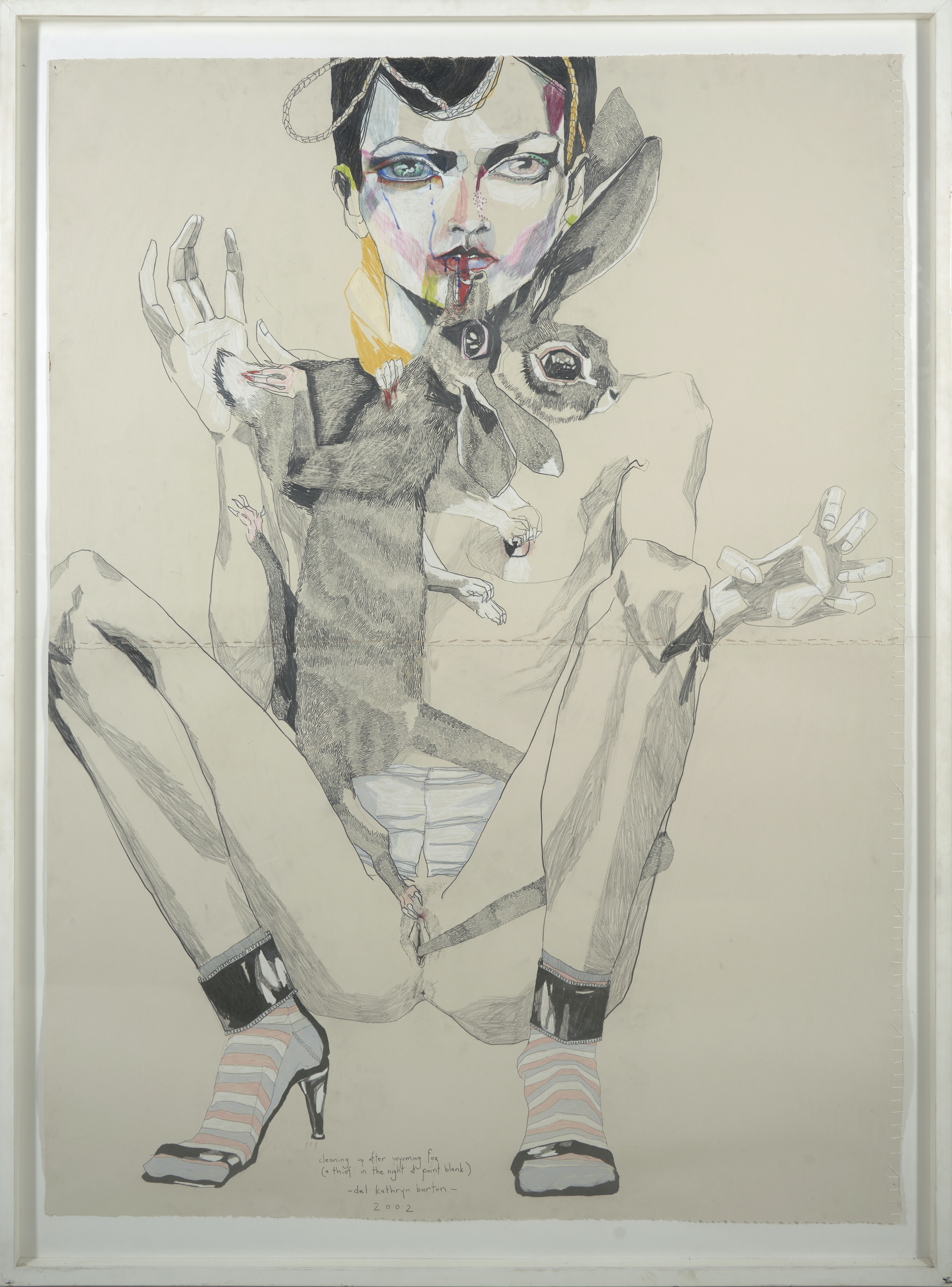 signed, titled and dated lower centre: cleaning up after wyoming fox/ (a thief in the night at point blank)/ - del kathryn barton - / 2002