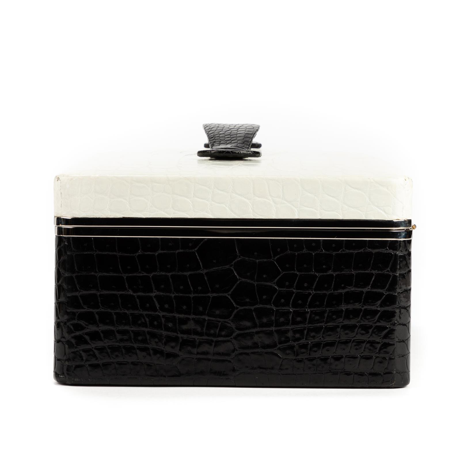 Styled in black/white crocodile skin with silver tone metal hardware, 29 x 10 x 18cm.
