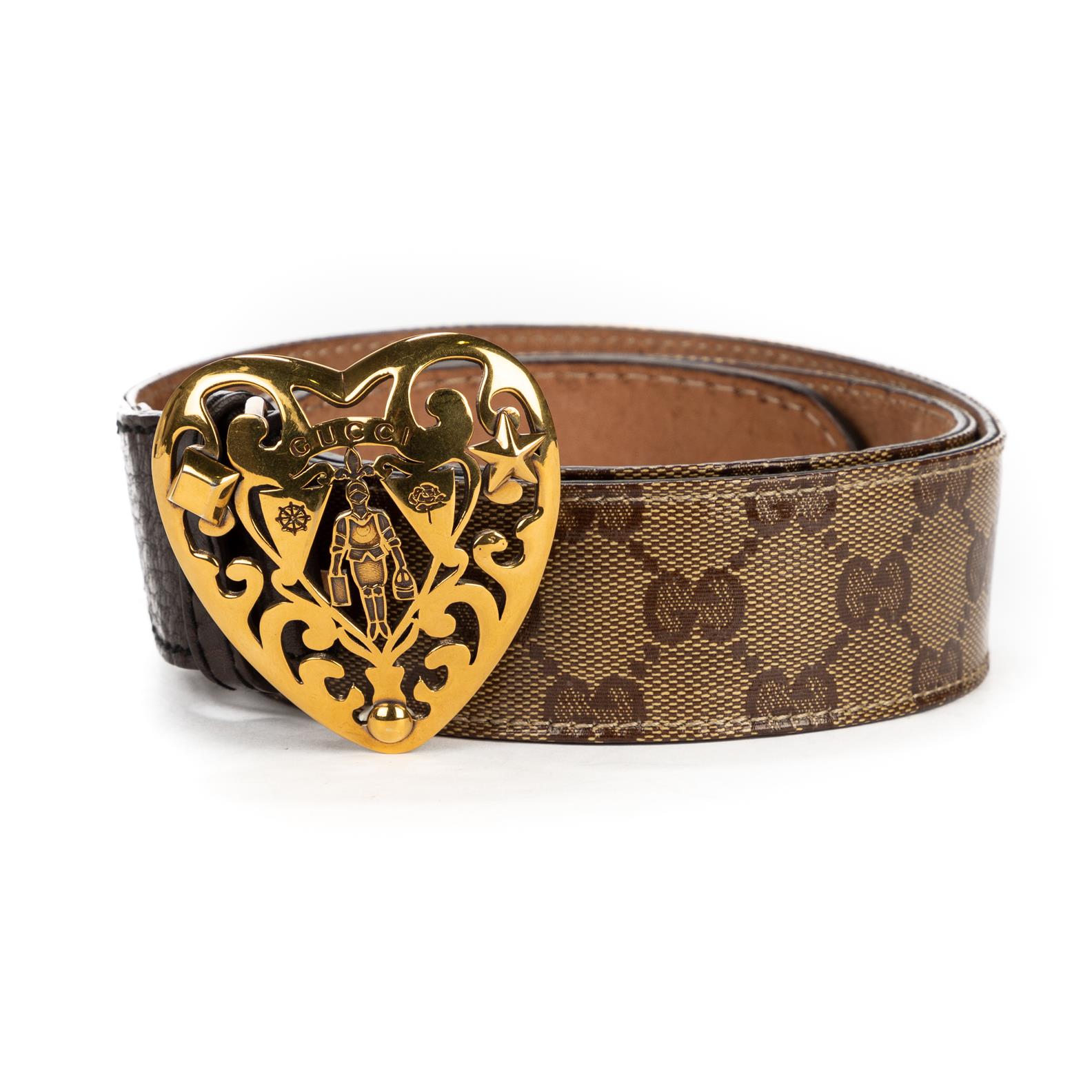 Styled in brown monogram coated canvas with gold metal buckle, marked size 85.