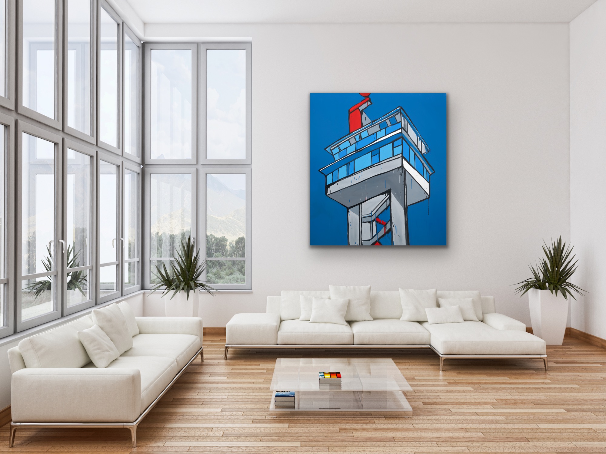 signed, titled and dated verso: JASPER KNIGHT/ 'DOCKLANDS/ CONTROL/ TOWER' 2015