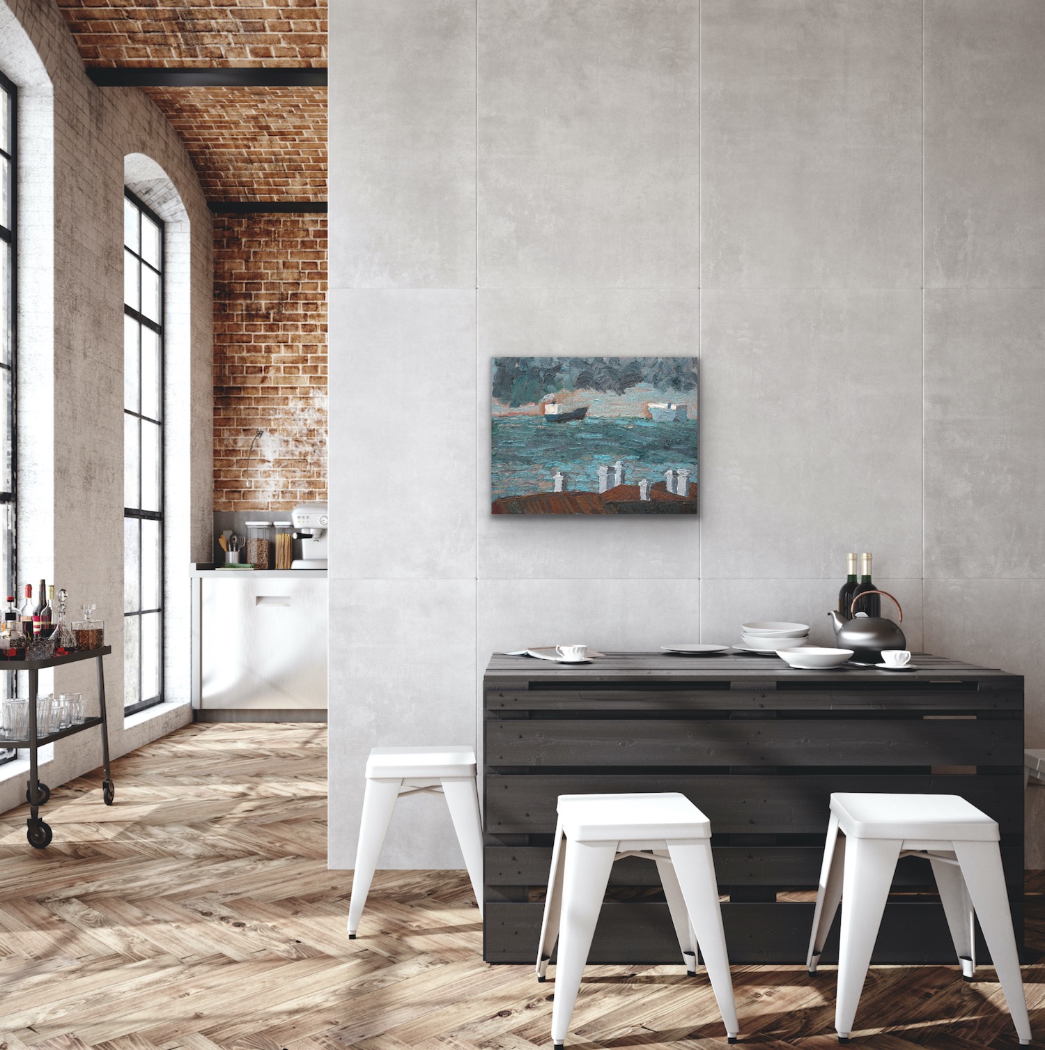 Very good condition. This work has no additional framing, the paint continues around the side of the board.