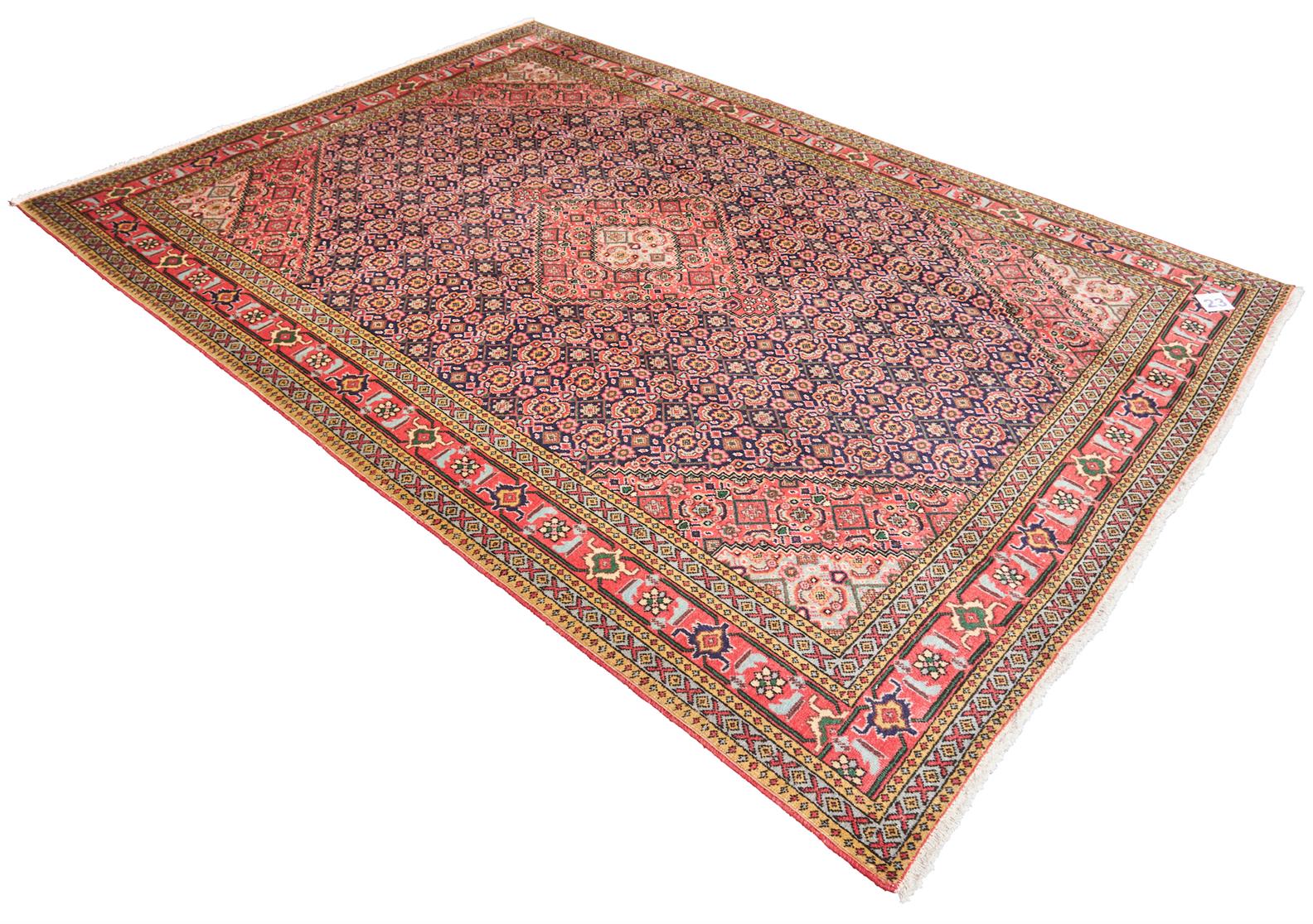 A PERSIAN ARDEBIL CARPET, CIRCA 1970'S 100% WOOL PILE. STYLIZED CENTRAL MEDALLION, WITH ALL OVER HERATI MOTIFS. MAJOR BORDER OF TRIBAL MOTIFS. GOOD CLEAN CONDITION. SIZE: 285X200CM ORIGIN: ARDEBIL/IRAN - RRP: $4,500 CERTIFICATE OF AUTHENTICITY INCLUDED.