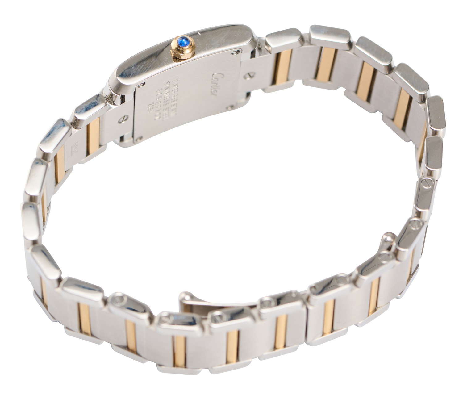 Closure: Cartier brushed and polished stainless steel and gold link bracelet and folding clasp