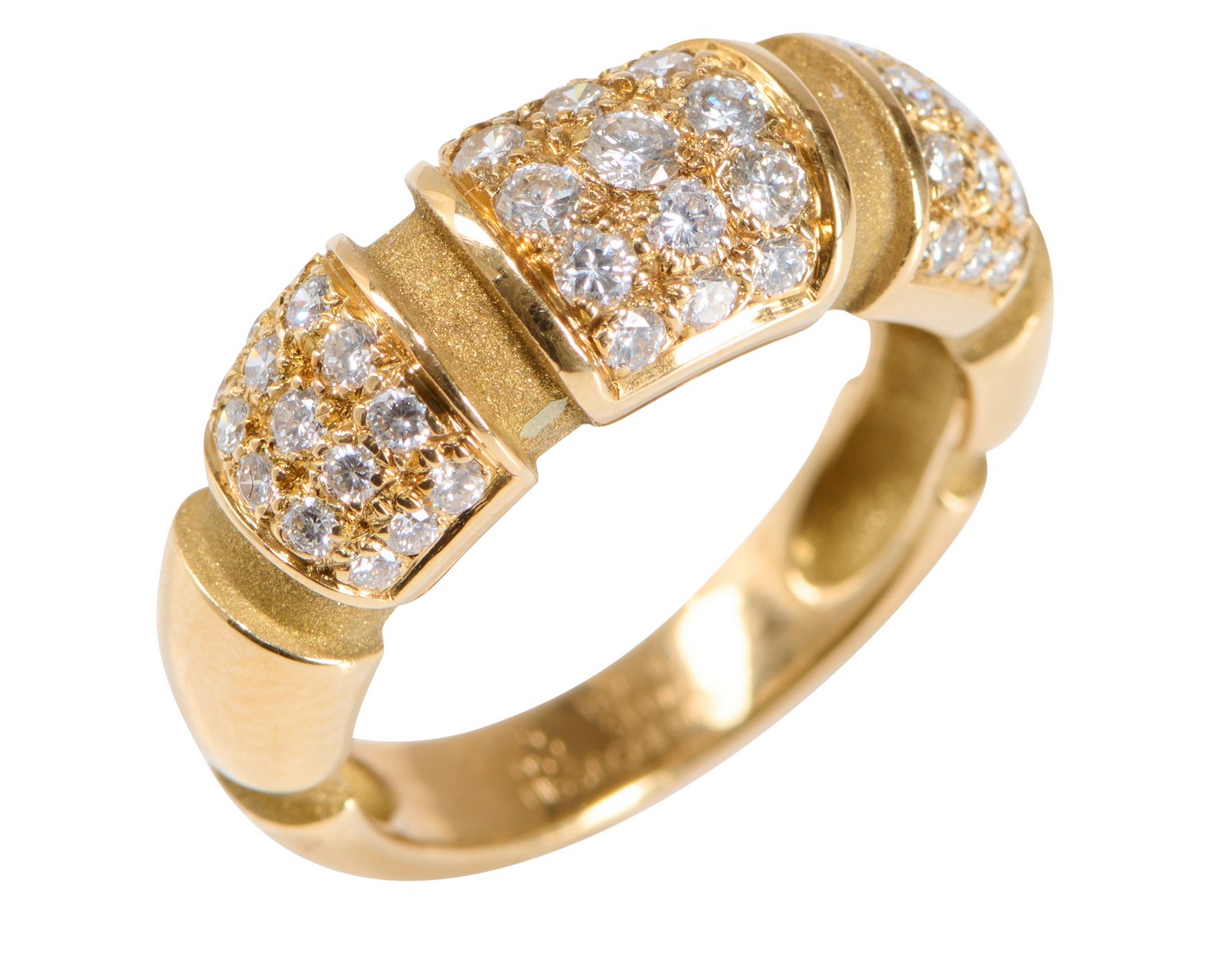 The tapered band, with sectional panels detailed with round brilliant-cut diamonds together weighing approximately 0.79, signed Mauboussin Paris and numbered A3791, ring size L 1/2.