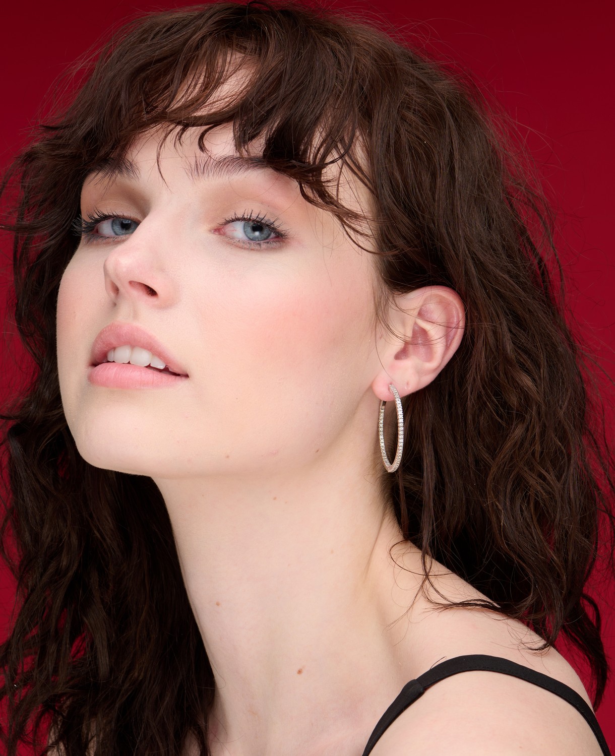 The round hoops set to the front and inside back with claw-set round brilliant-cut diamonds together weighing approximately 0.55 carats, to post and clip fittings, length 34mm.