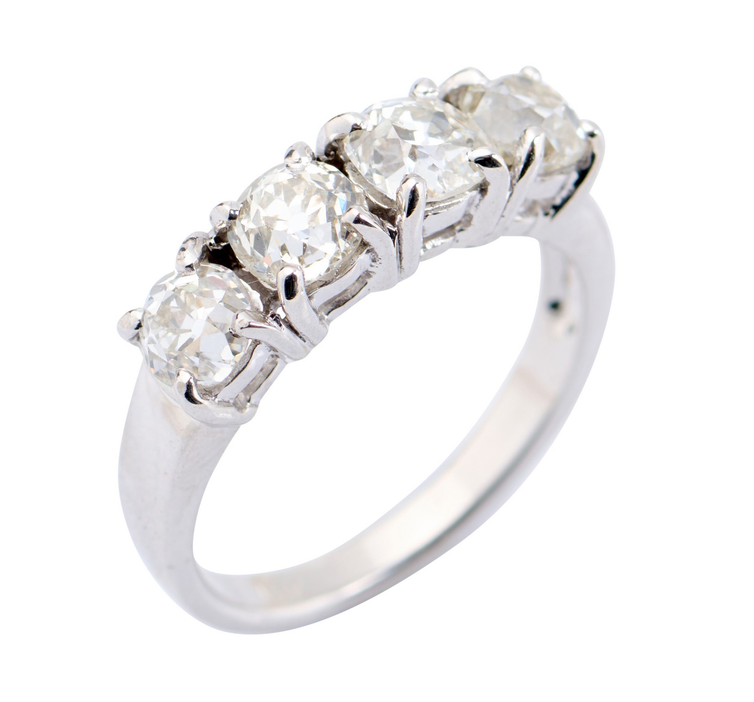 The diamonds are bright and lively and range approximately J-K colour and VS-SI clarity as gauged and graded in the mount