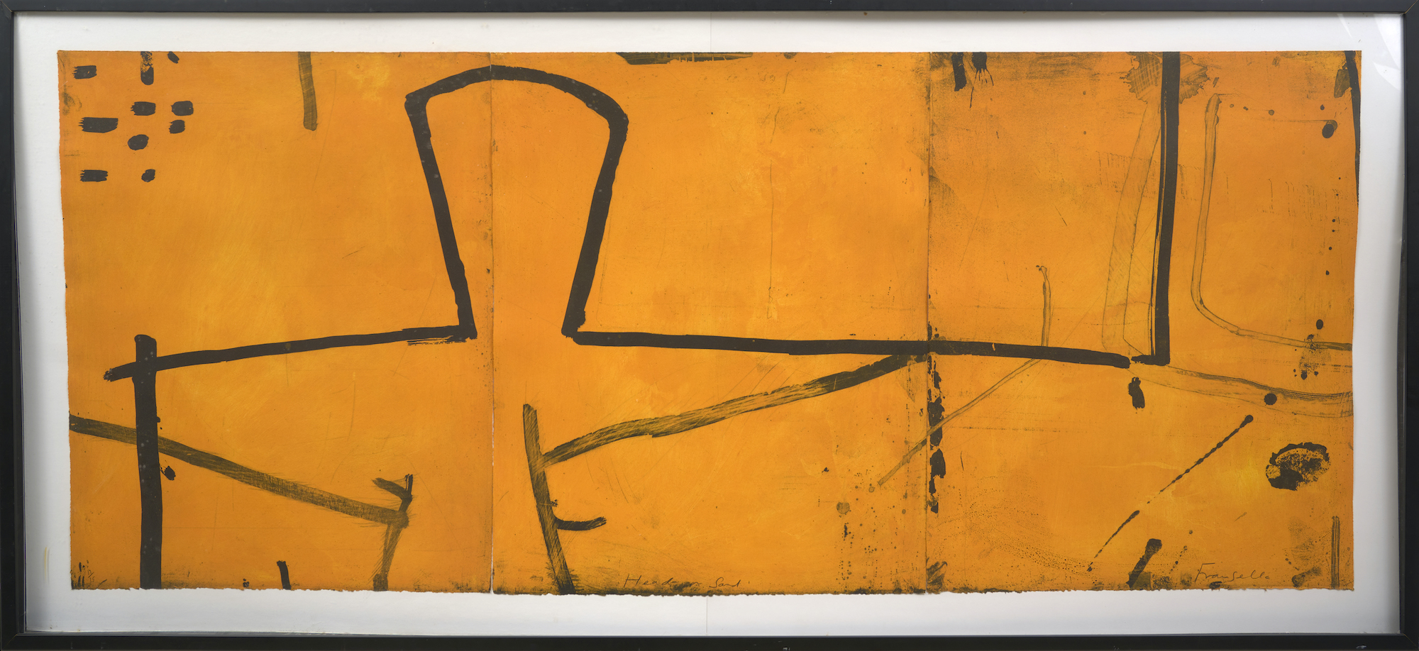 There is consistant blooming across the black pigment of the print. Work has become loose in frame, it is our advice to have the artwork reframed. Frame measuring 136 x 234cm. Please note, this artwork has not been inspected out of the frame.
