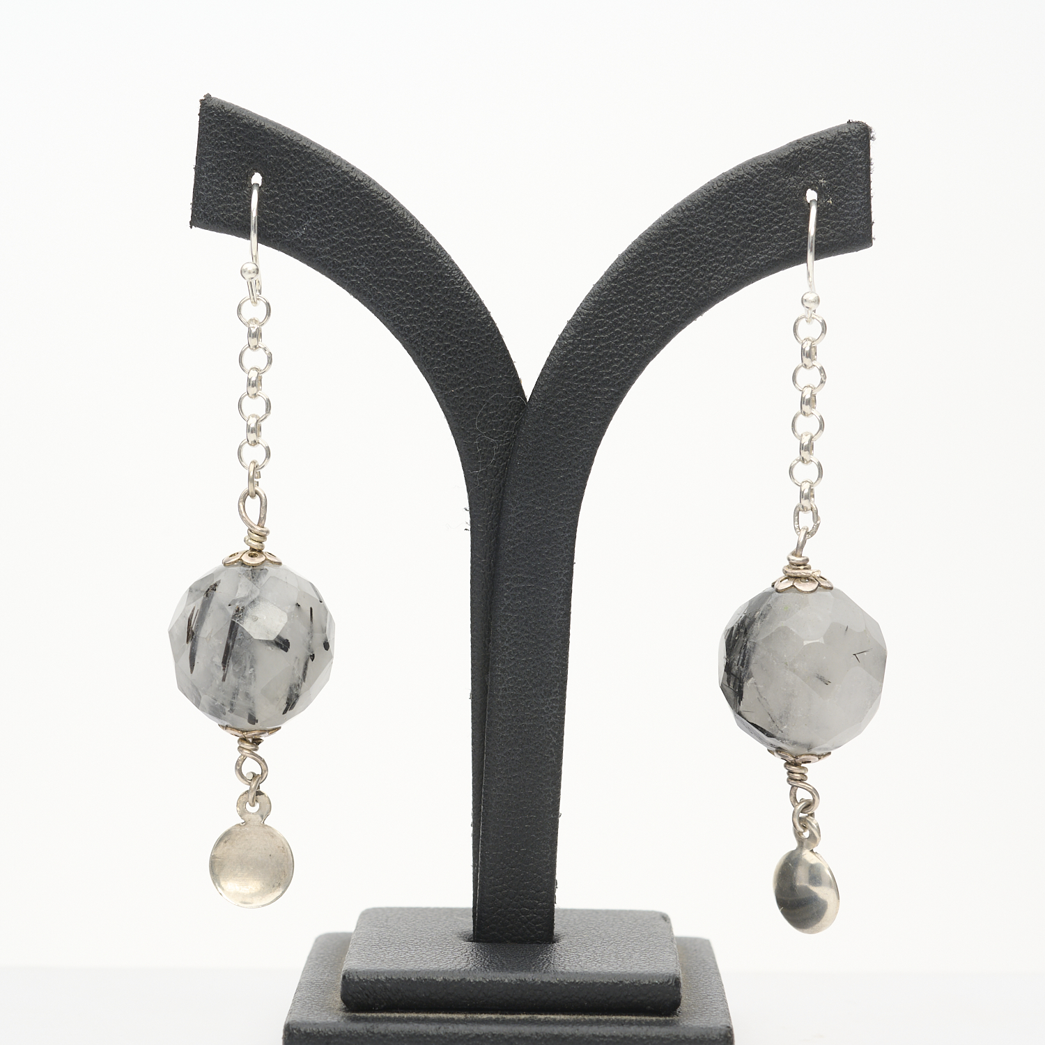 A SPECIMEN AGATE SET NECKLACE IN STERLING SILVER, LENGTH 470MM, TOGETHER WITH A PAIR OF FACETED QUARTZ EARRINGS, DROP LENGTH 40MM