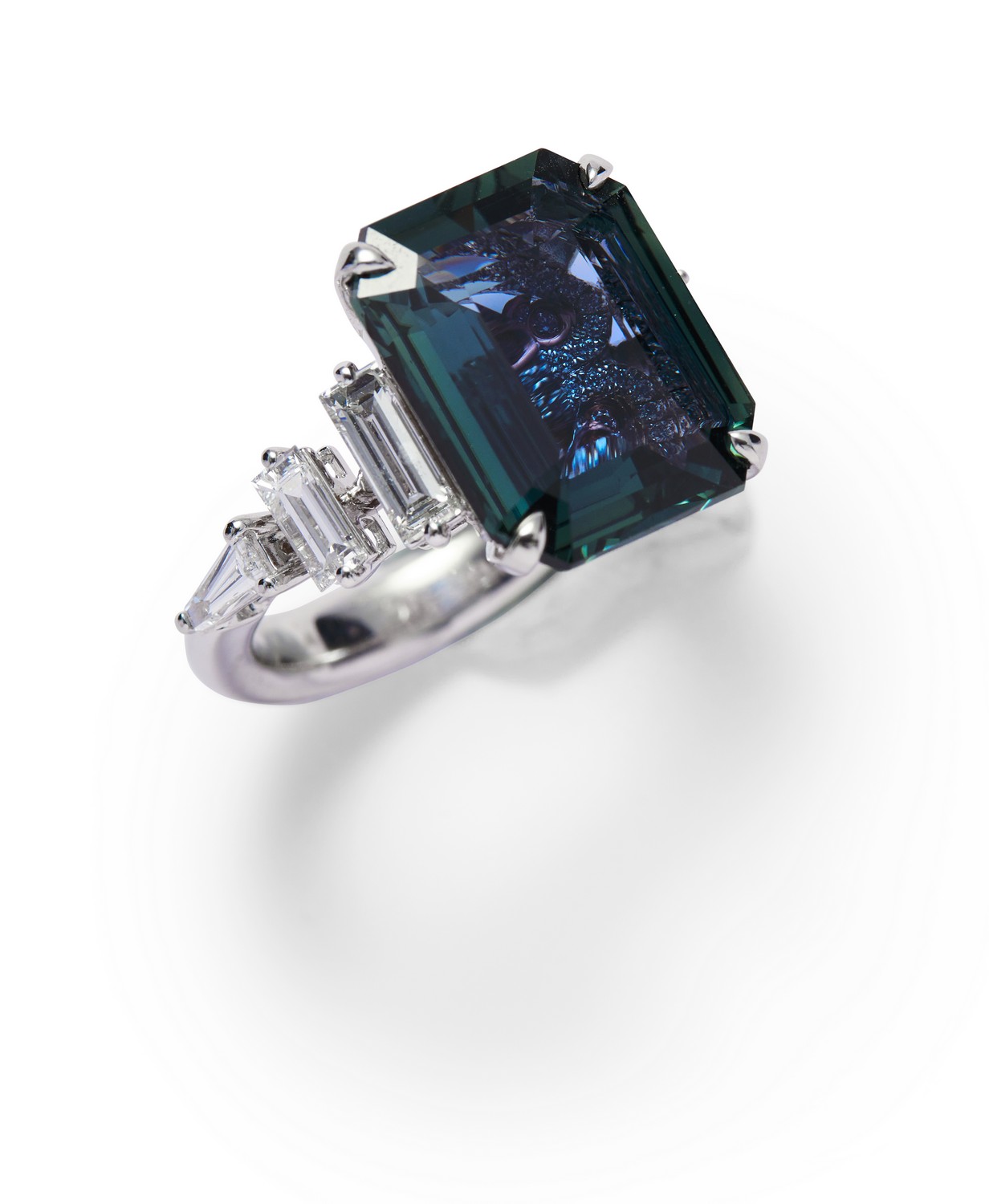 Accompanied by a GRS report numbered GRS2019-011875, dated 1 February 2019, stating that the 9.24 carat sapphire is natural, of blue-green colour, with no indications of heating.