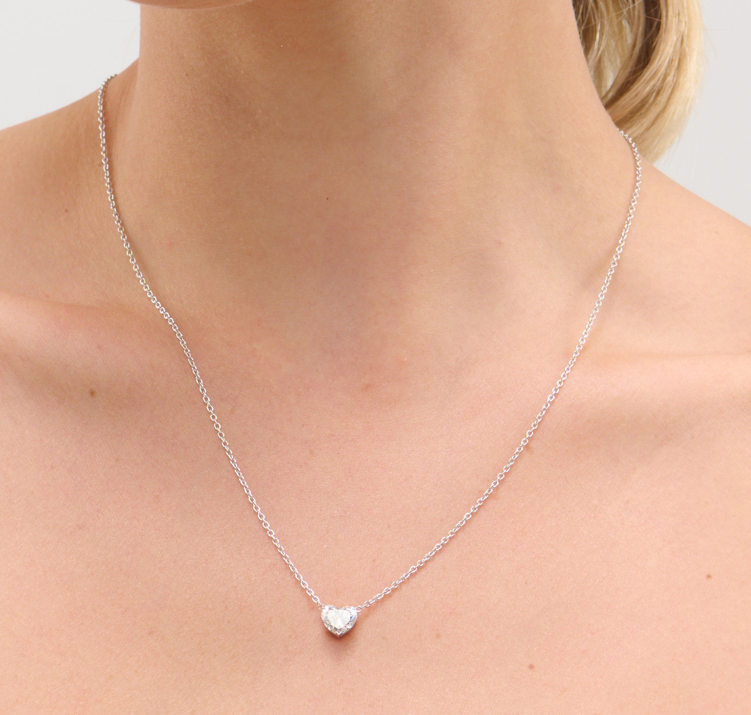 The claw-set heart brilliant-cut diamond weighing 1.50 carats, is completed by a fine platinum trace chain, circumference 465mm.