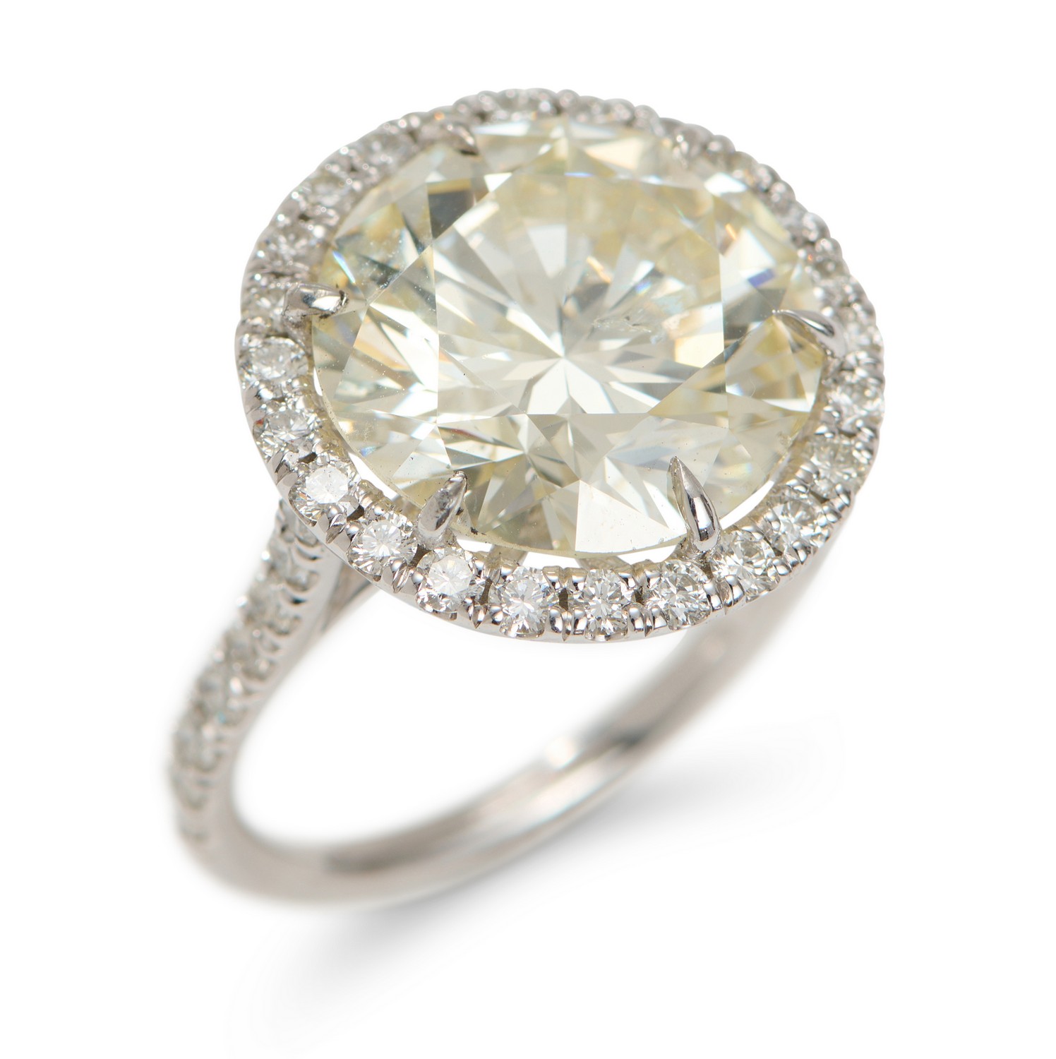 Claw-set with a brilliant-cut diamond weighing 9.30 carats, mounted in 18ct white gold.